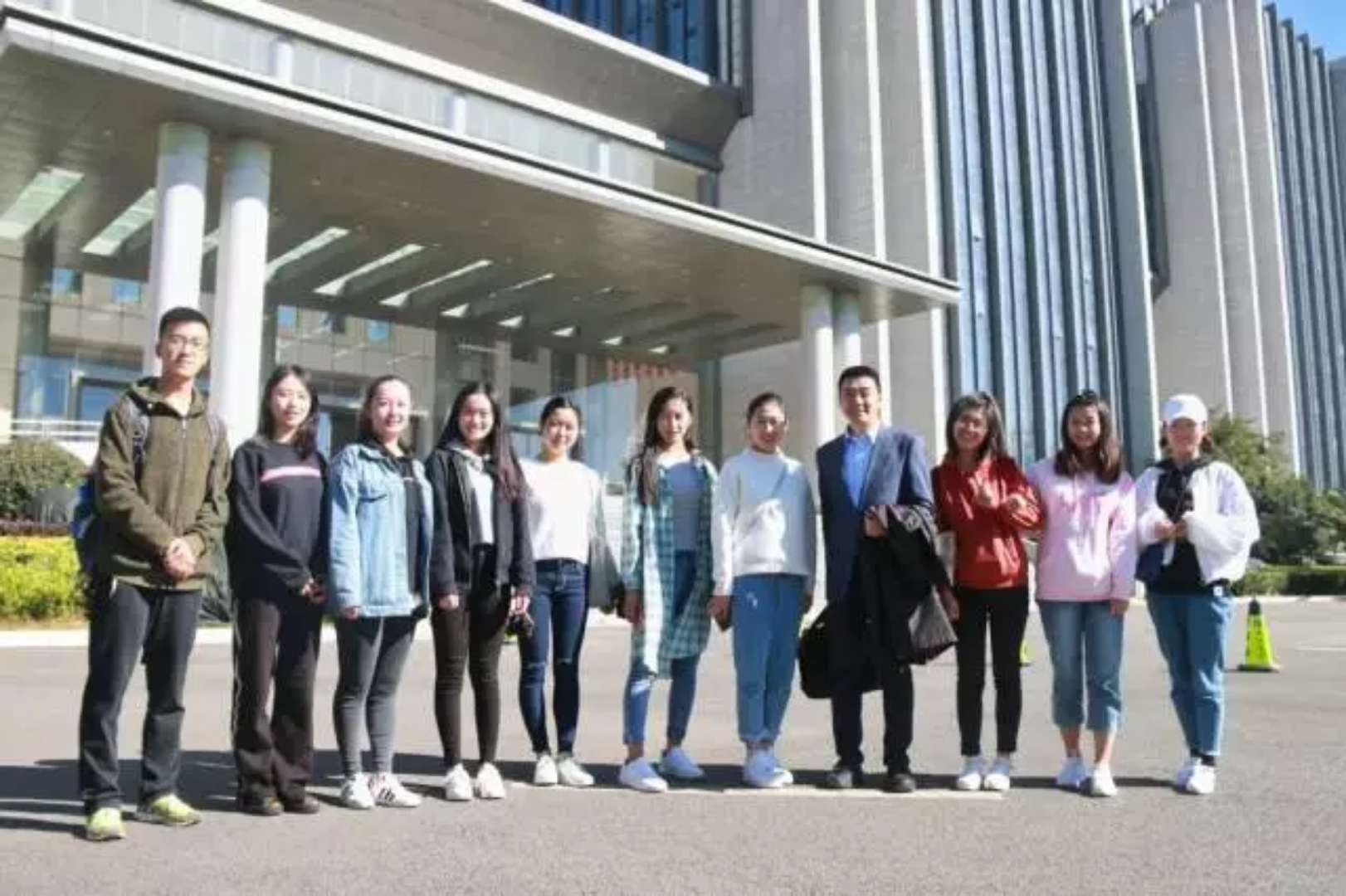 观摩学习结束后,周老师与播音151班的同学们在云南广播电视台门口集体合影。