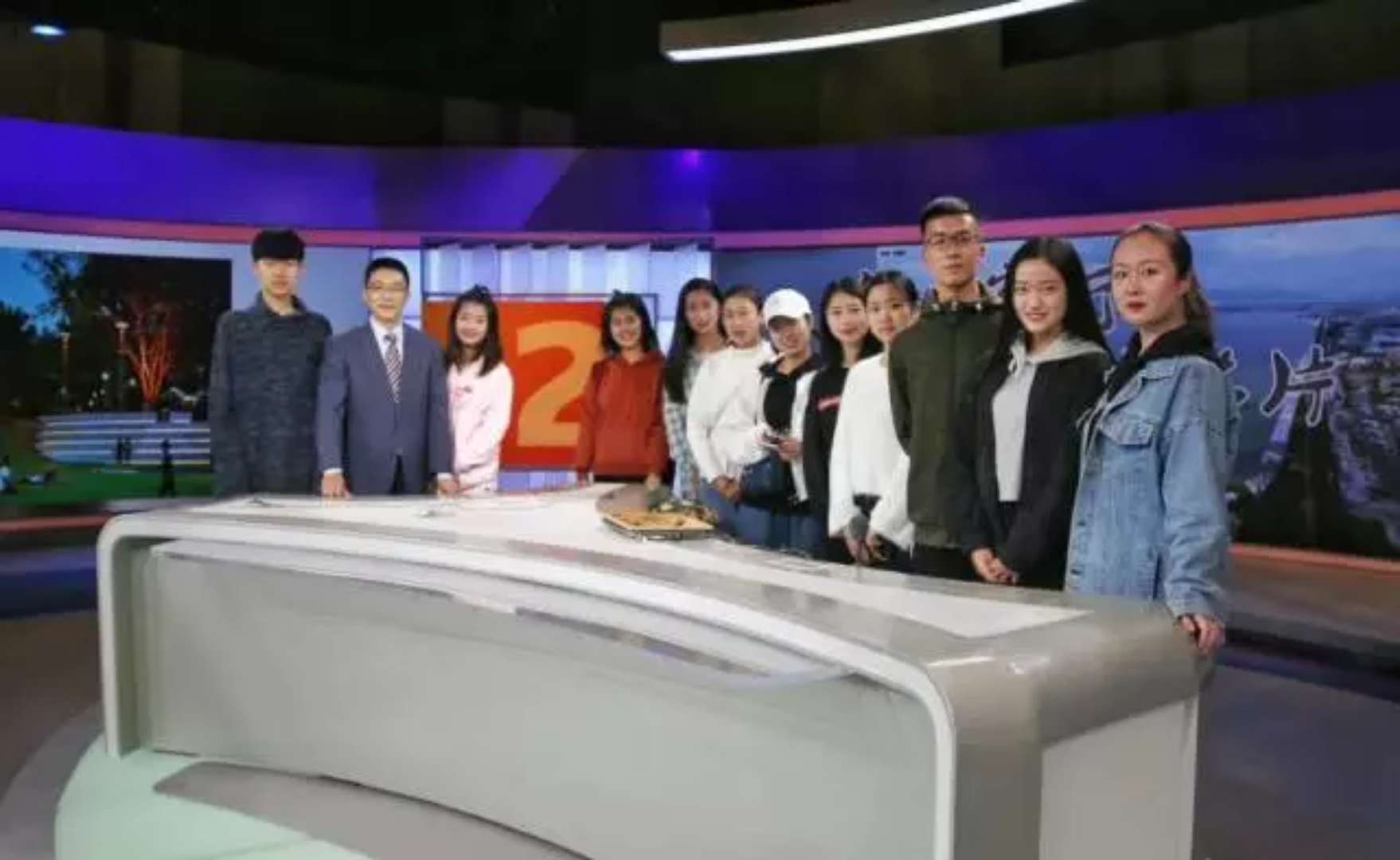 周康梁教授带领播音151班的11名同学来到云南广播电视台新台,观摩学习都市频道的工作,这是同学们第一次走进省级电视台演播室。