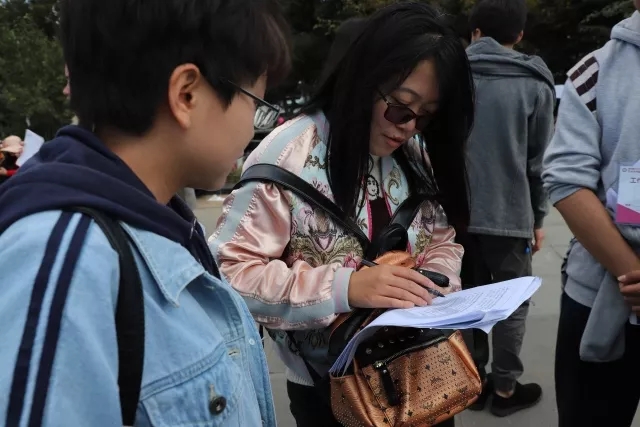 同学们向游客派发问卷