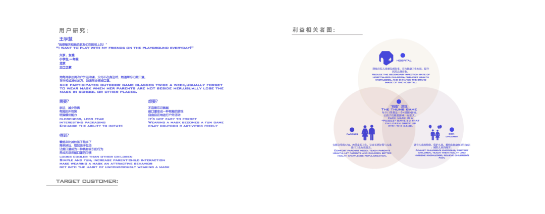 该设计从全球新冠疫情防控的角度出发,借助可持续与情感化设计理念,将“勤洗手”、“戴口罩”、“勤消毒”等防疫知识通过可视化与可玩性的趣味手指游戏融入到儿童口罩包装盒上,以此培养儿童日常戴口罩的习惯,并消减孩子们对口罩的抵触情绪与恐惧感,为全球新冠疫情防控贡献中国智慧。