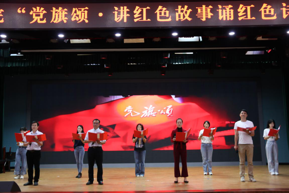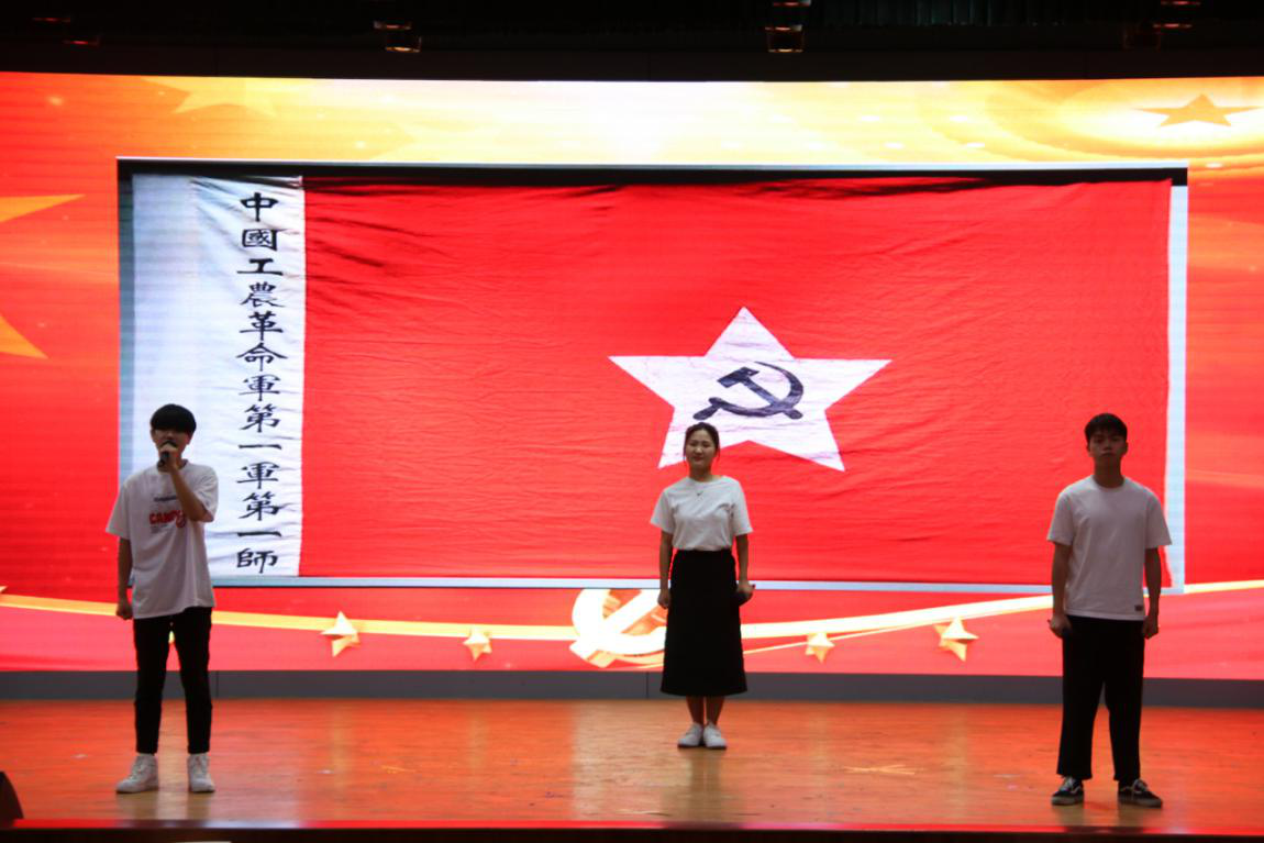 党课结束后,学院举办了“党旗颂·讲红色故事诵红色诗篇”活动,来自不同年级的学生们个个慷慨激昂,讲述着党史党话,演绎着爱国故事,抒发着爱国情怀。最后以学院领导带领学工办老师朗诵《党旗颂》落下帷幕。