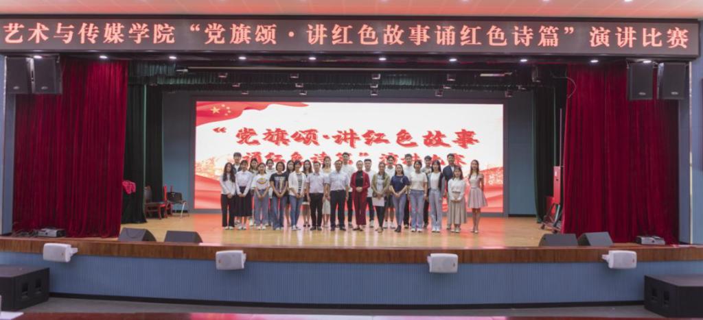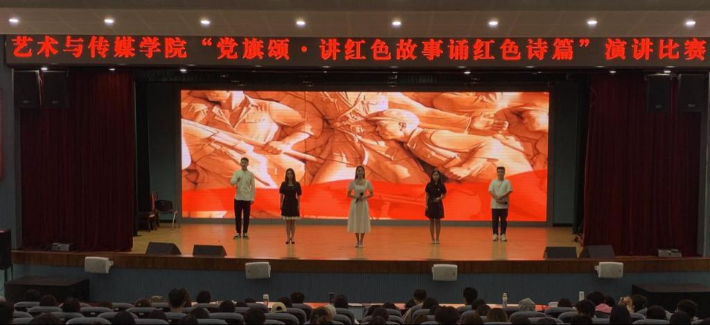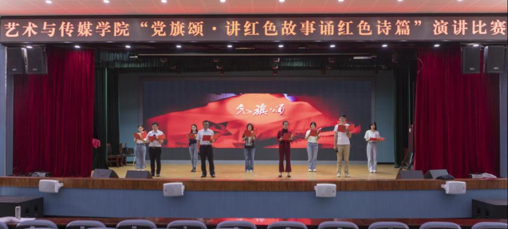 “党旗颂·讲红色故事 诵红色诗篇”演讲比赛在小剧场顺利举行。学院党委书记孙刚、党委副书记严波、学院党员师生代表共计100余人参加了此次主题演讲比赛。