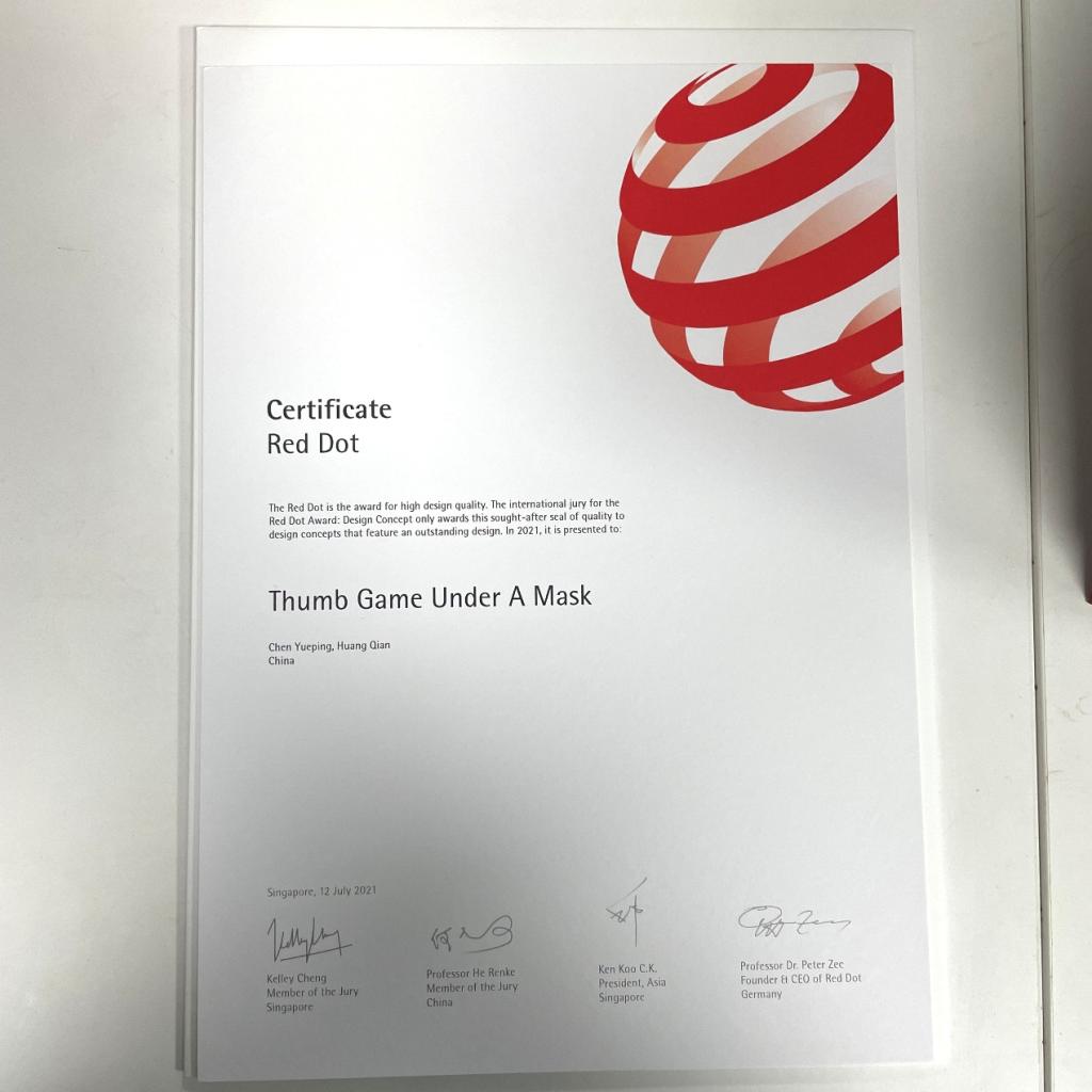 2017级产品设计专业本科学子陈跃萍、黄倩团队作品《Thumb Game Under A Mask》(指导教师 田野副教授)的设计从全球参赛作品中脱颖而出,获“Red Dot Design Concept”设计概念奖。该设计从全球新冠疫情防控的角度出发,借助可持续与情感化设计理念,将“勤洗手”“戴口罩”“勤消毒”等防疫知识通过可视化与可玩性的趣味手指游戏融入到儿童口罩包装盒上,以此培养儿童日常戴口罩的习惯,并消减孩子们对口罩的抵触情绪与恐惧感,为全球新冠疫情防控贡献中国智慧。