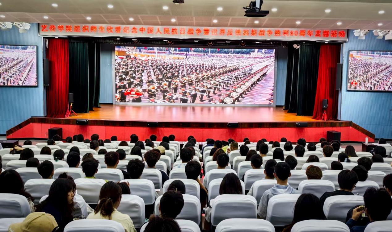 学院党委李云燕书记、崔颖副院长(主持工作)到场与师生代表们共同观看。这场活动不仅是一次简单的观礼,更是一堂生动的专业实践与思政教育融合课。同学们表示,要将感动转化为创作动力,用艺术作品传承历史记忆,用传媒技术传播时代强音。