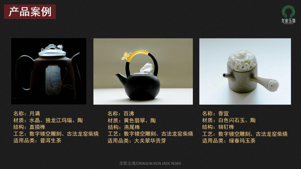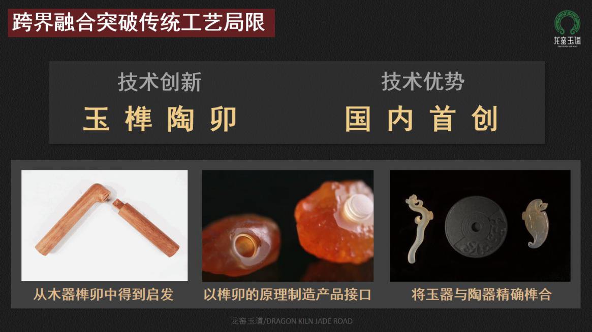项目致力于非物质文化遗产跨界融合,提出非遗+智能制造的理念,以茶具为载体,利用智能制造开发出精确榫合玉器和陶器的关键技术,实现传统非遗工艺与现代制造技术的古今交融,项目获得国家专利6项,实现玉器工艺、传统手工陶器工艺、榫卯工艺的完美融合,突破传统局限、拓宽非遗内涵、凸显云南特色,为国内首创。