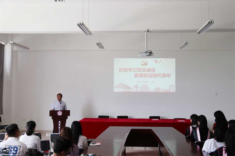会议开始后,由学院党委书记孙刚带领全体党员同志对着党旗重温入党誓词;随后,孙刚书记发表讲话,他向全体党员同志提出三点要求,一是坚定信仰,要时时刻刻提醒自己党员是第一身份,为党工作是第一职责,积极主动,奋发有为,勇于向前;二是锤炼党性,敢于担当,严格遵守党的政治纪律和政治规矩;三是奋发有为,善于担当,面对困难要奋勇争先。