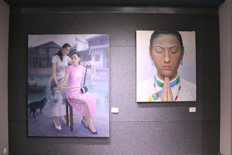 最后在场的各位老师一一向李教授表示祝贺。此次展览展出了李教授部分山水画和油画作品。