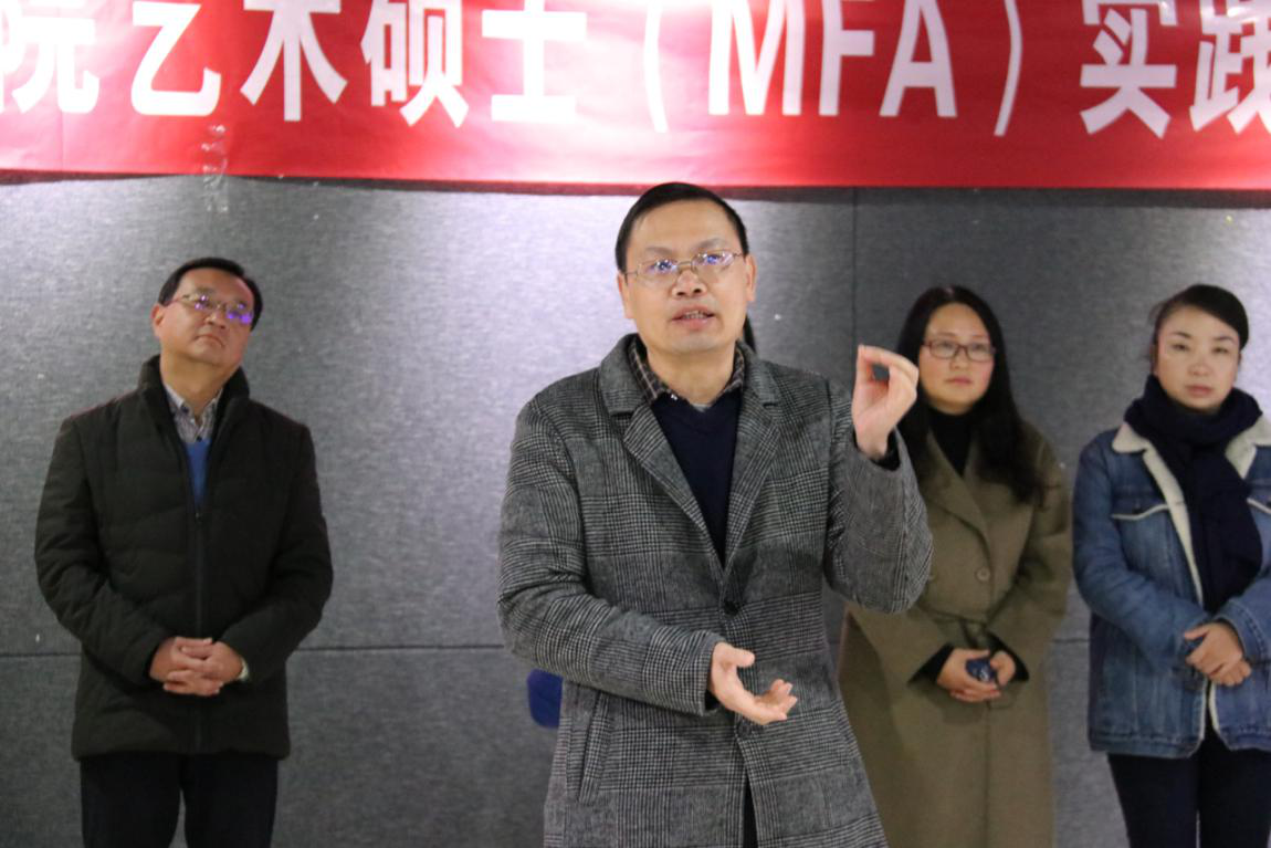 2017级艺术硕士(MFA)实践作品展在学院美术馆开幕。开幕式由研教办主任杨一静老师主持,孙刚书记,王勇副院长以及全院师生代表出席开幕式。此次展览共展出实践作品166件,其中广播电视专业作品28件,设计类作品90件,美术作品48件。