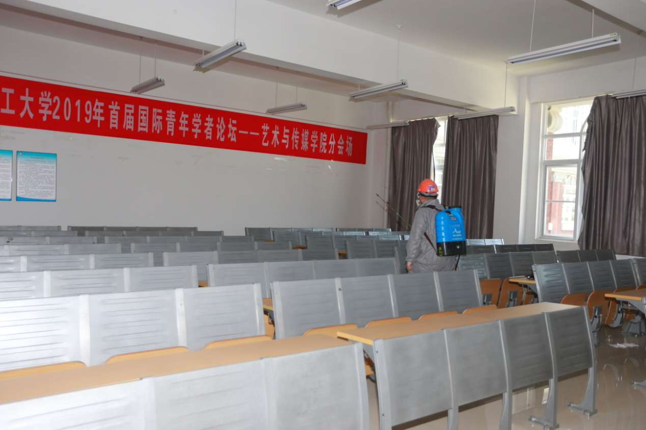 为了响应校党委提出的“压紧压实疫情防控责任,坚决打赢疫情防控阻击战”的号召,保证同学们返校后能在安全清洁的环境中正常上课,经院党委研究决定,在同学们集中返校和教学开展之前,由实展中心预先对学院公教楼的各类教室和工作室进行消毒。3月26日全天,实展中心杨明、邓伟、何然三位教师,使用84消毒液和电动喷雾器,对学院公教楼40余间展厅、教室、工作室和办公室进行了集中消毒,并封闭门窗确保消毒效果最大化。