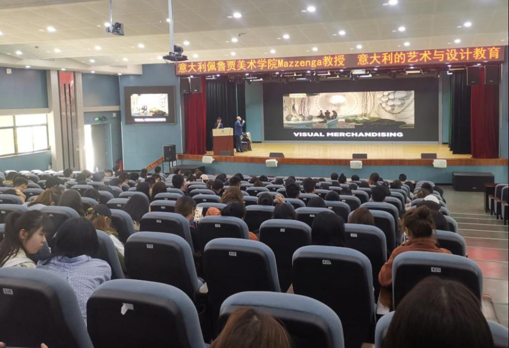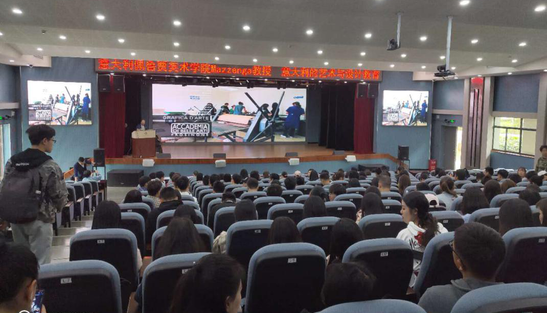 小剧场,Mazzenga教授在分享了一段意大利文艺之旅的宣传片后,以《意大利的艺术与设计教育》为题向学院美术学与设计学专业的师生们详细介绍了包括佩鲁贾美术学院在内的意大利美院的教学设施、课堂氛围、专业特色与学科发展情况,尤其阐释了佩鲁贾美术学院能够为留学生提供的各类优势学习资源,让同学们直观的在意大利艺术与设计的浓厚氛围中感受到所学专业的学科魅力。