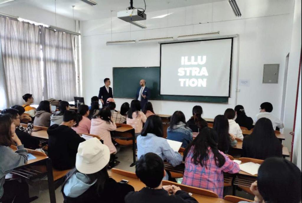 视觉传达、数字媒体、工业设计、环境设计、绘画与广告专业的学生共同完成了一次大师课的教学。Mazzenga教授以视频结合图文的方式向同学们展现了意大利在品牌创意、平面设计、媒体艺术等现代设计领域的前沿趋势与相关作品,让同学们了解到相关专业在意大利发展的水平与呈现的状貌。同时,各方向学生代表准备了作品集与教授进行一对一的交流,进一步通过国际视野与全球思维的沟通认识到自身的专业特长与优势。
