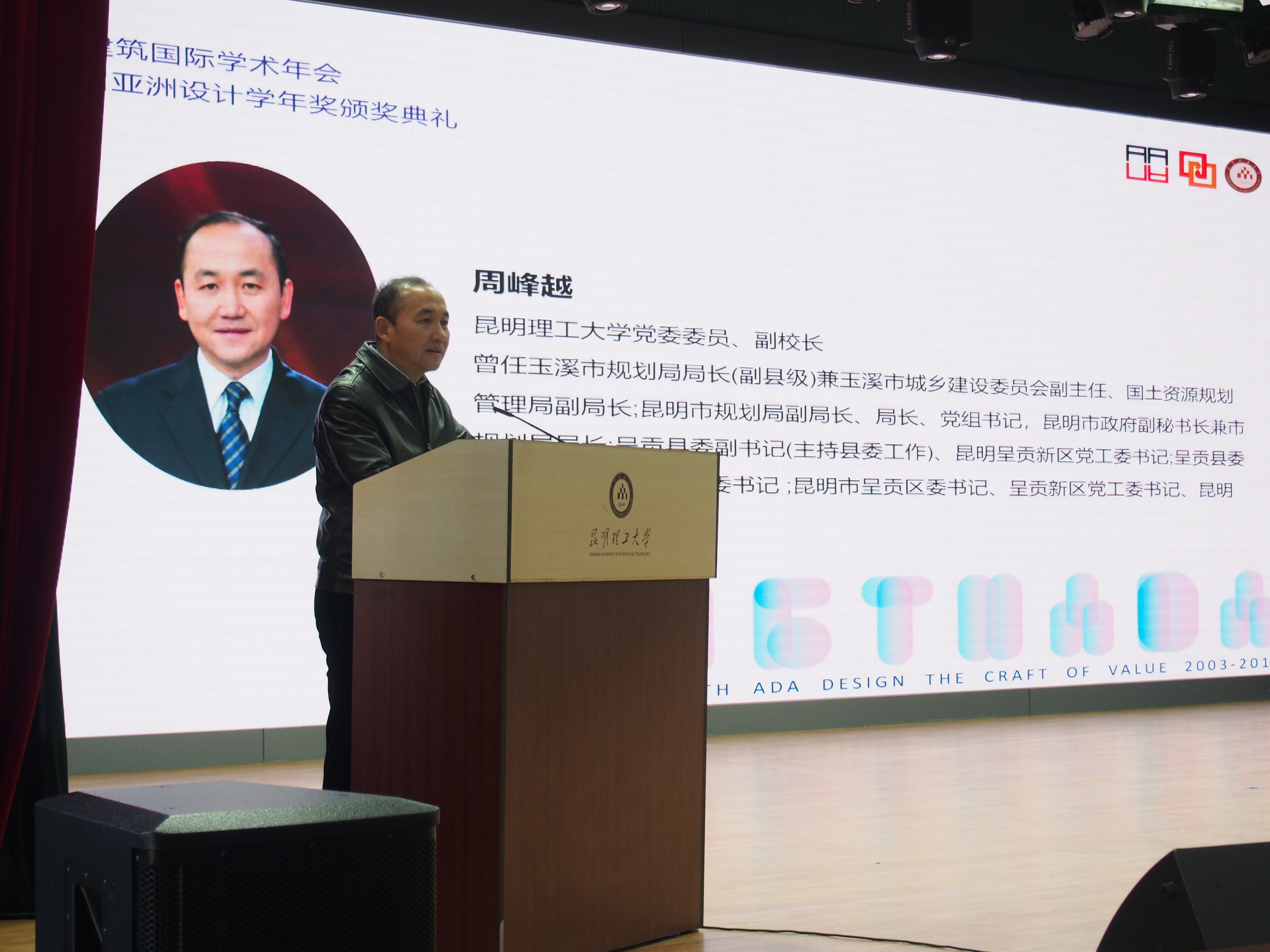 张建国副院长主持下拉开帷幕。周峰越副校长在开幕式上为年会致辞,介绍了我校的发展概况,并向本届年会暨颁奖典礼的举行表示热烈的祝贺。紧接着西樵山风景名胜区管委会办公室主任邝倩、融创中国西南区域集团综合管理中心总经理刘锐分别进行致辞。最后由亚洲城市与建筑联盟董事执行主席姚领进行致辞,他回顾了亚洲城市与建筑国际学术年会多年来的发展历程并对未来发展做出展望。