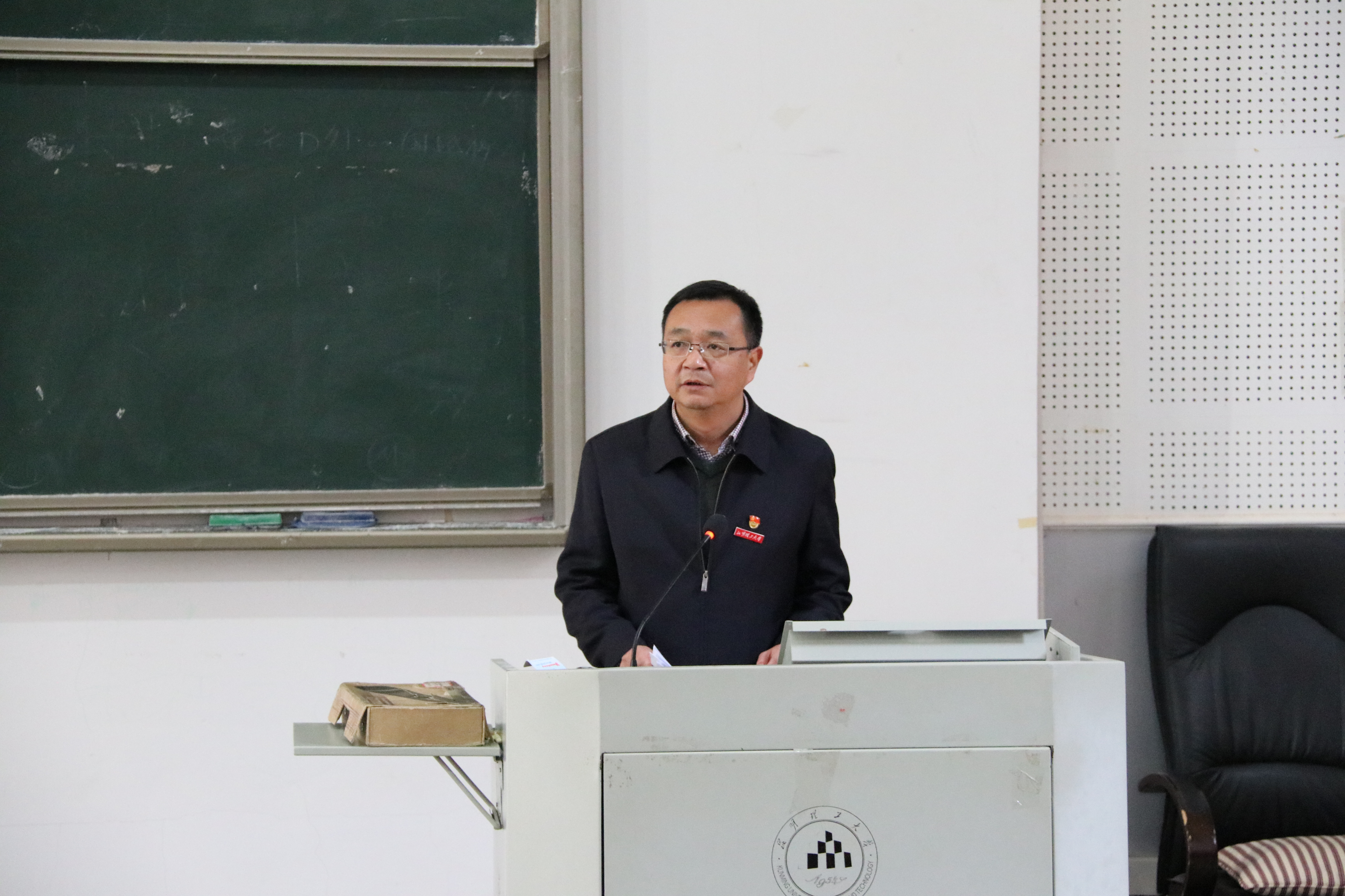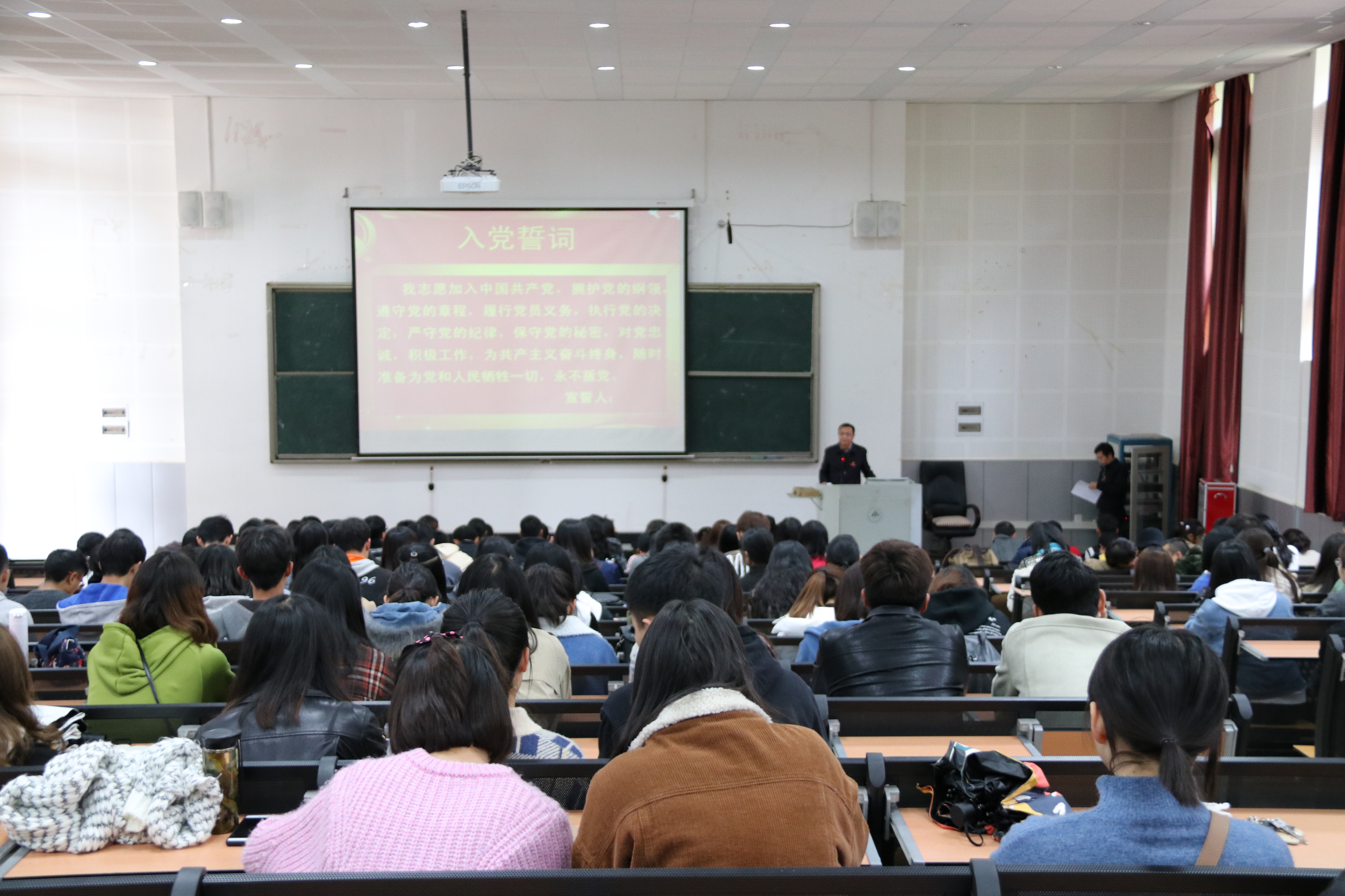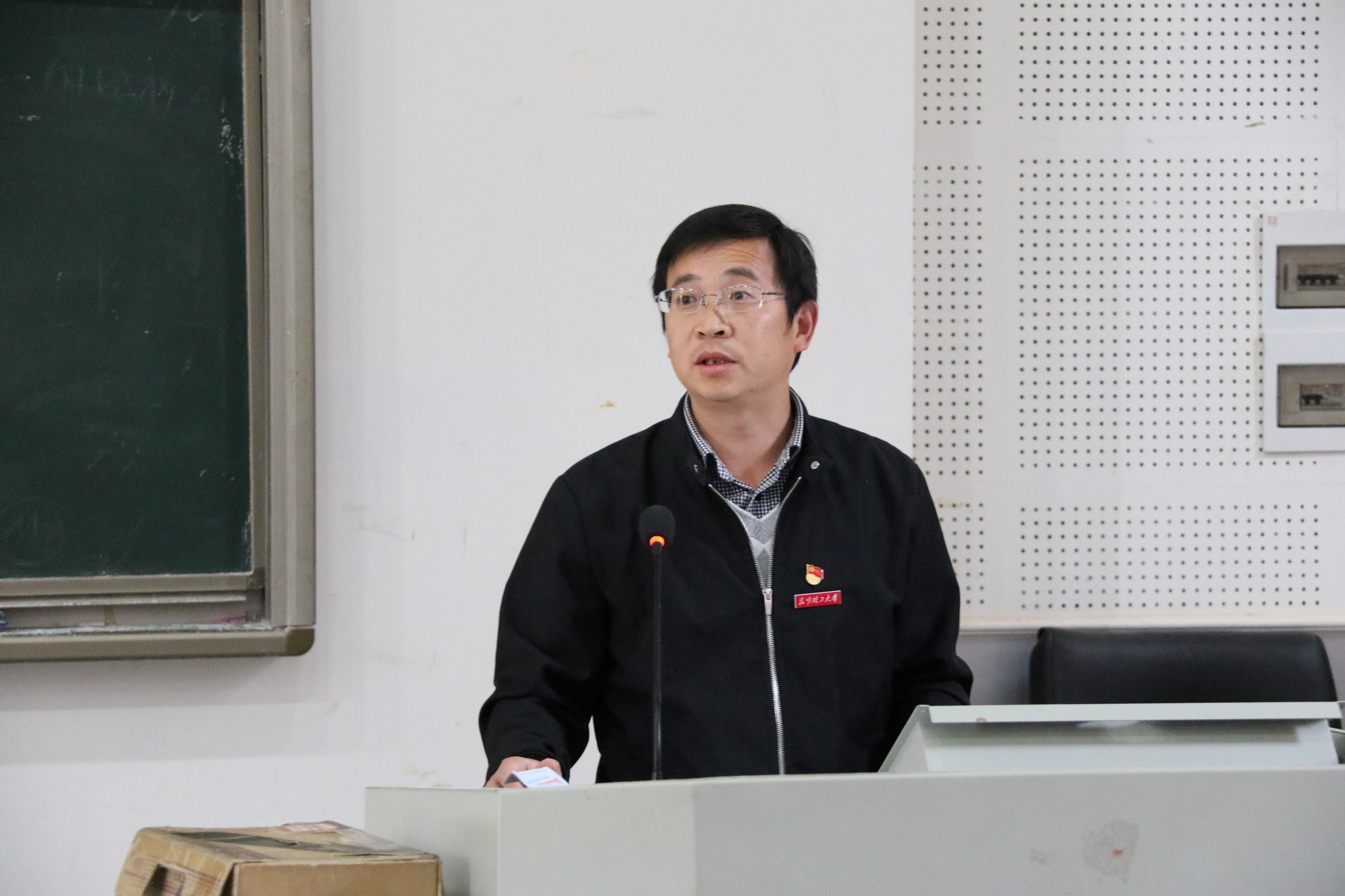 党委在博文楼100教室召开了“不忘初心、牢记使命”为主题的“万名党员进党校”学习大会,由孙刚书记主持,严波副书记主讲。