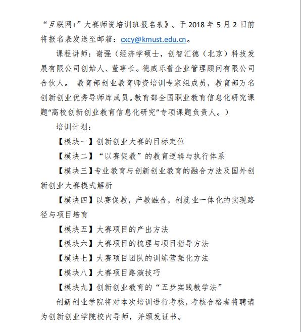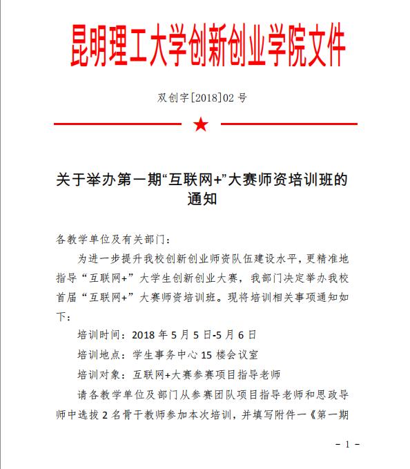 关于举办第一期“互联网+”大赛师资培训班的通知