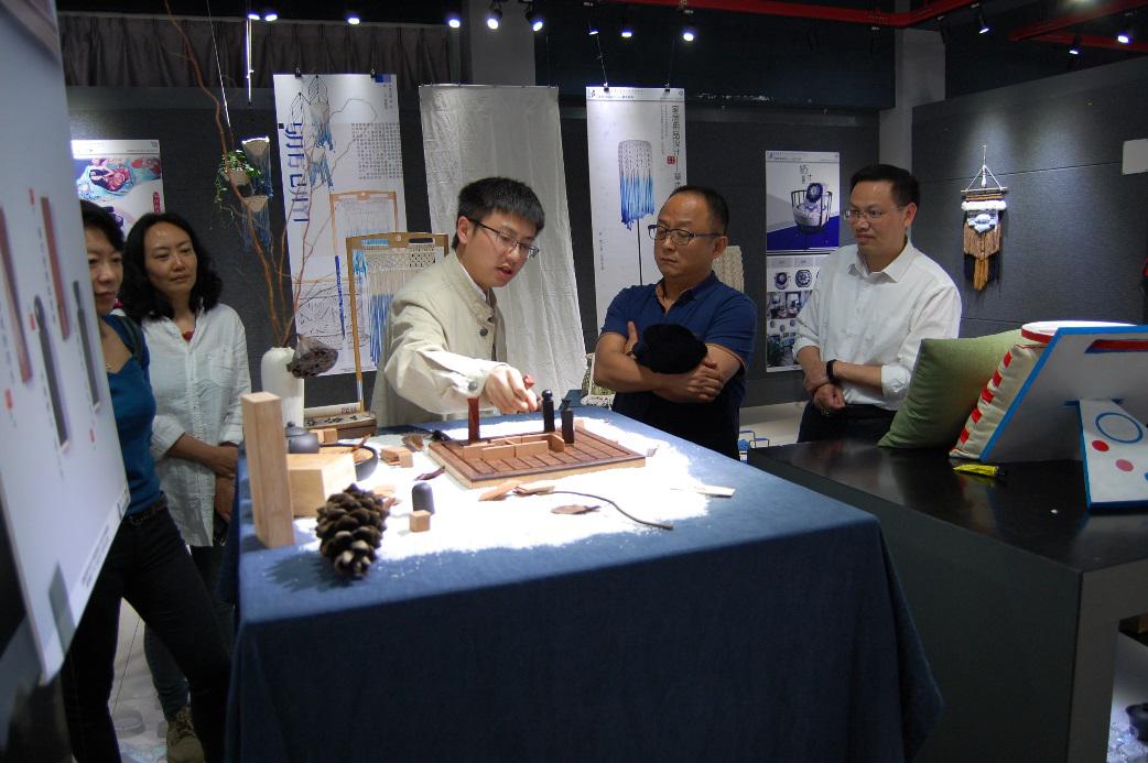 正在举办的工业设计系、美术系、新闻传播系的毕业设计作品展,并对学生的毕业作品给予了高度评价。