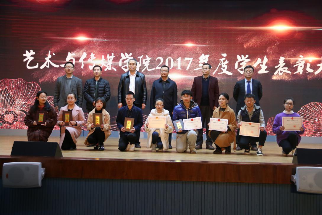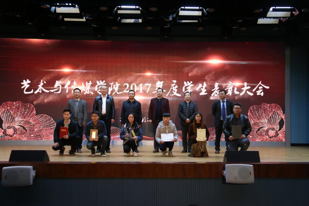 在小剧场召开2017年度学生表彰大会,对获得2017年度国家奖学金、省政府奖学金、省优干、省三好学生、省级以上专项奖等的先进集体和个人进行了表彰。