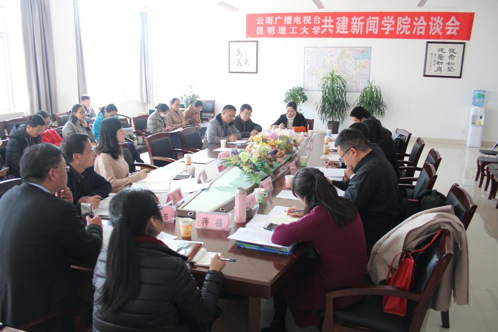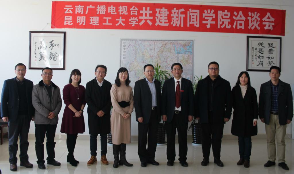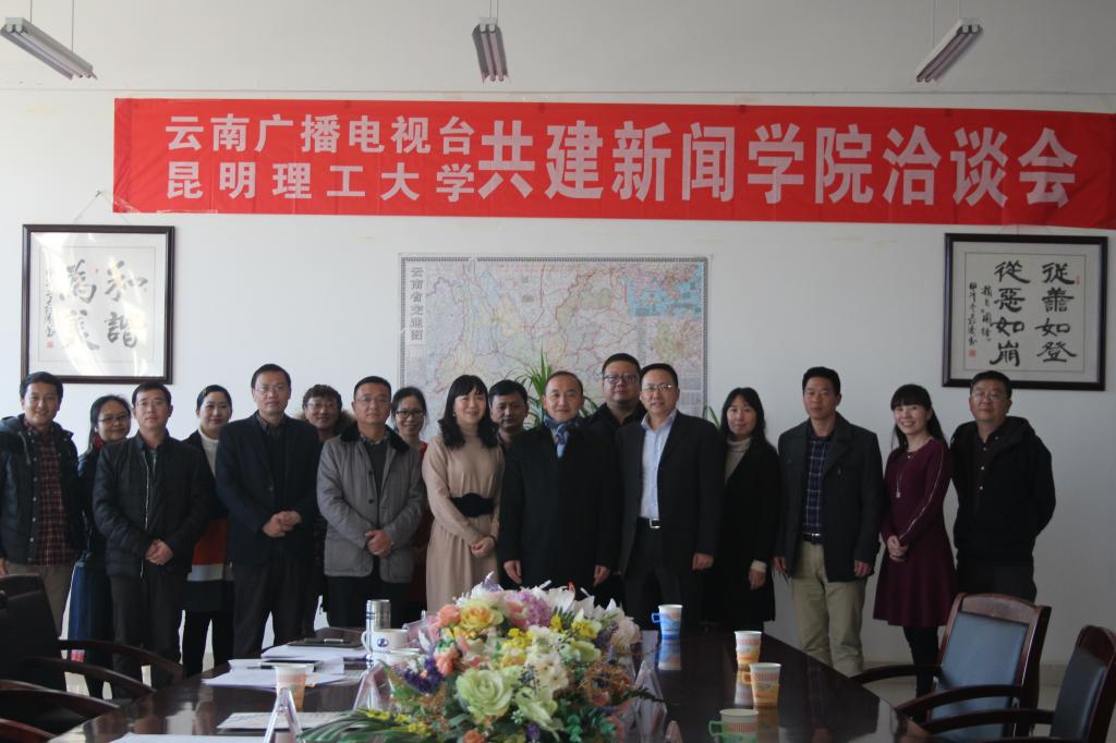 与云南广播电视台就共建新闻学院进行了深入研讨。云南播电视台副总经理杨于明、全媒体吃瓜网站副主任李汝松、新闻频率副总监文云红、云南广电传媒集团金彩影业公司副总经理钱虹宇、云南广播电视台人力资源部党支部副书记孙俊强等与吃瓜网站
