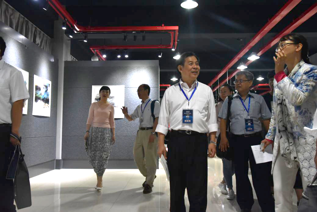院长许佳教授、美术系2017届绘画专业导师陈艳博士的陪同下,观看了“巡青——2017届美术系绘画专业毕业作品展”。