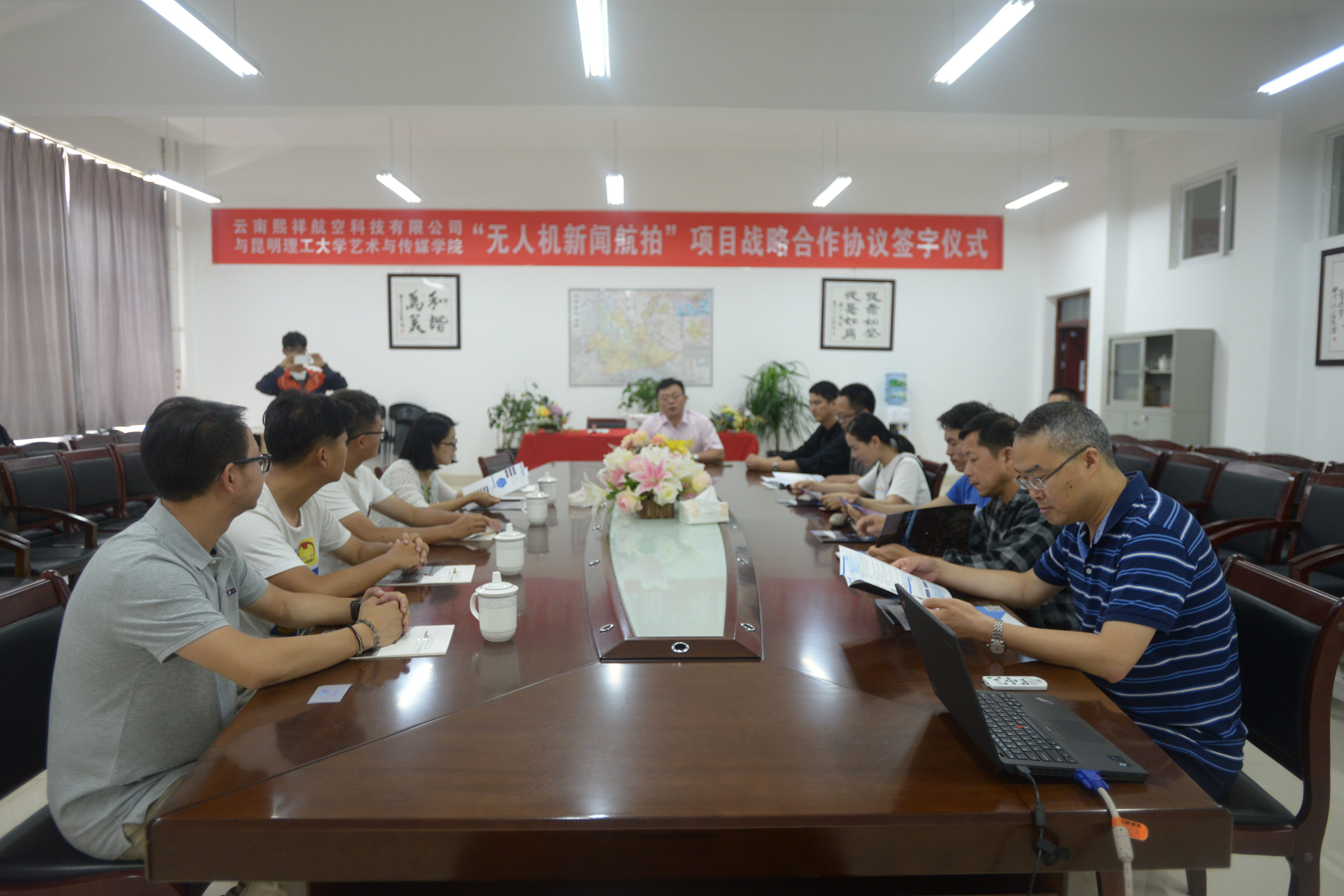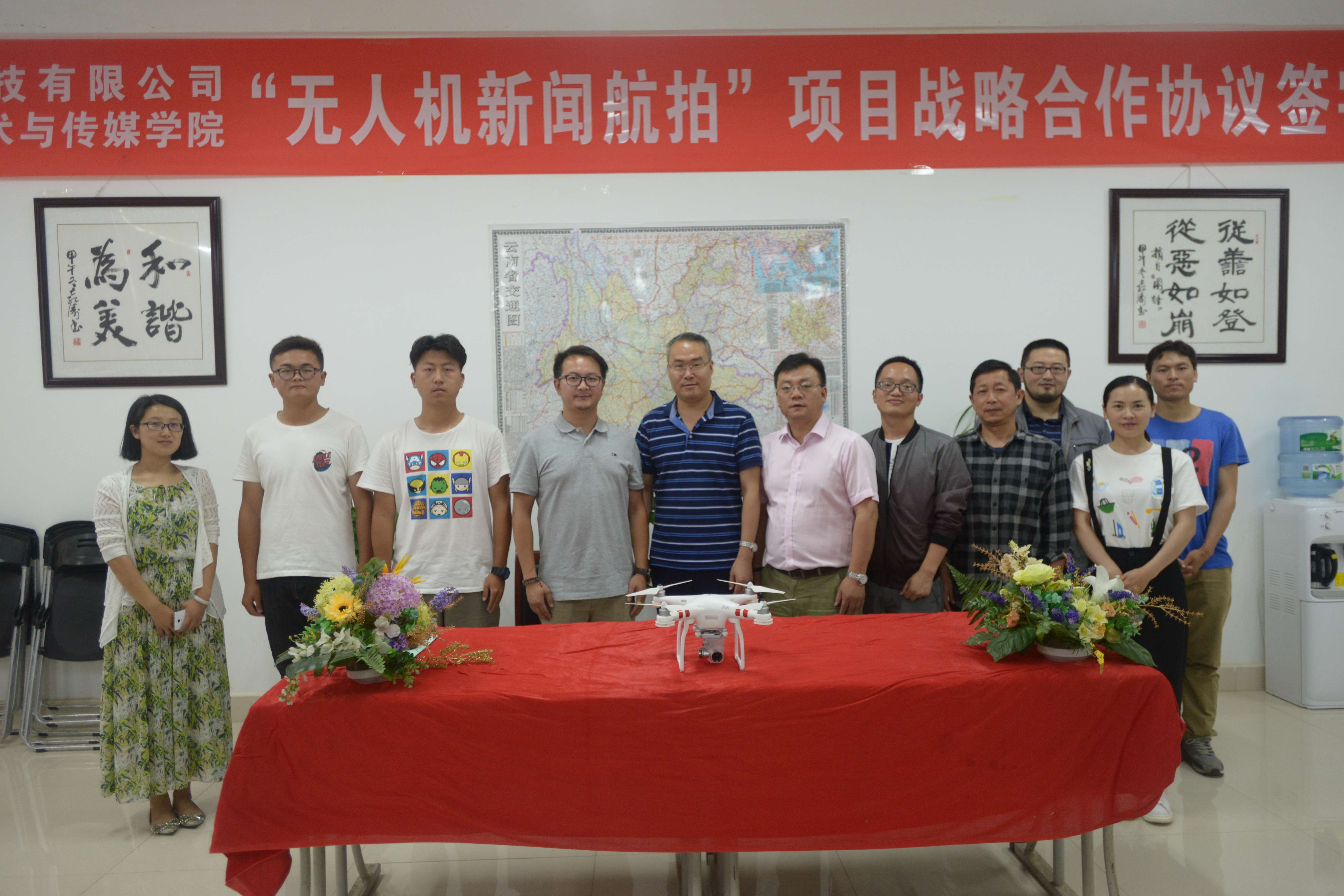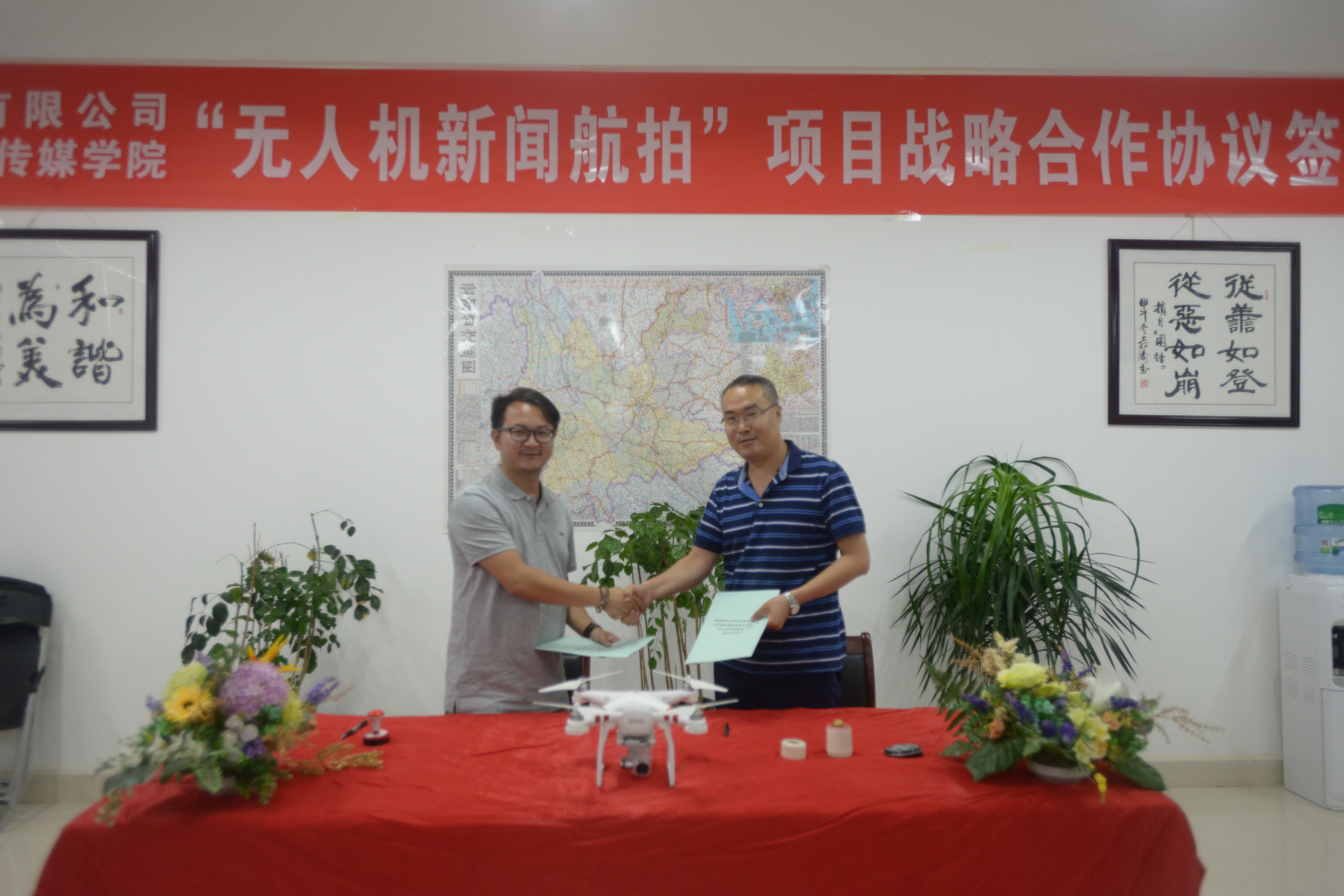 与云南熙祥航空科技有限公司“无人机新闻航拍”项目战略合作协议》,并为双方无人机航拍实训基地赠牌。