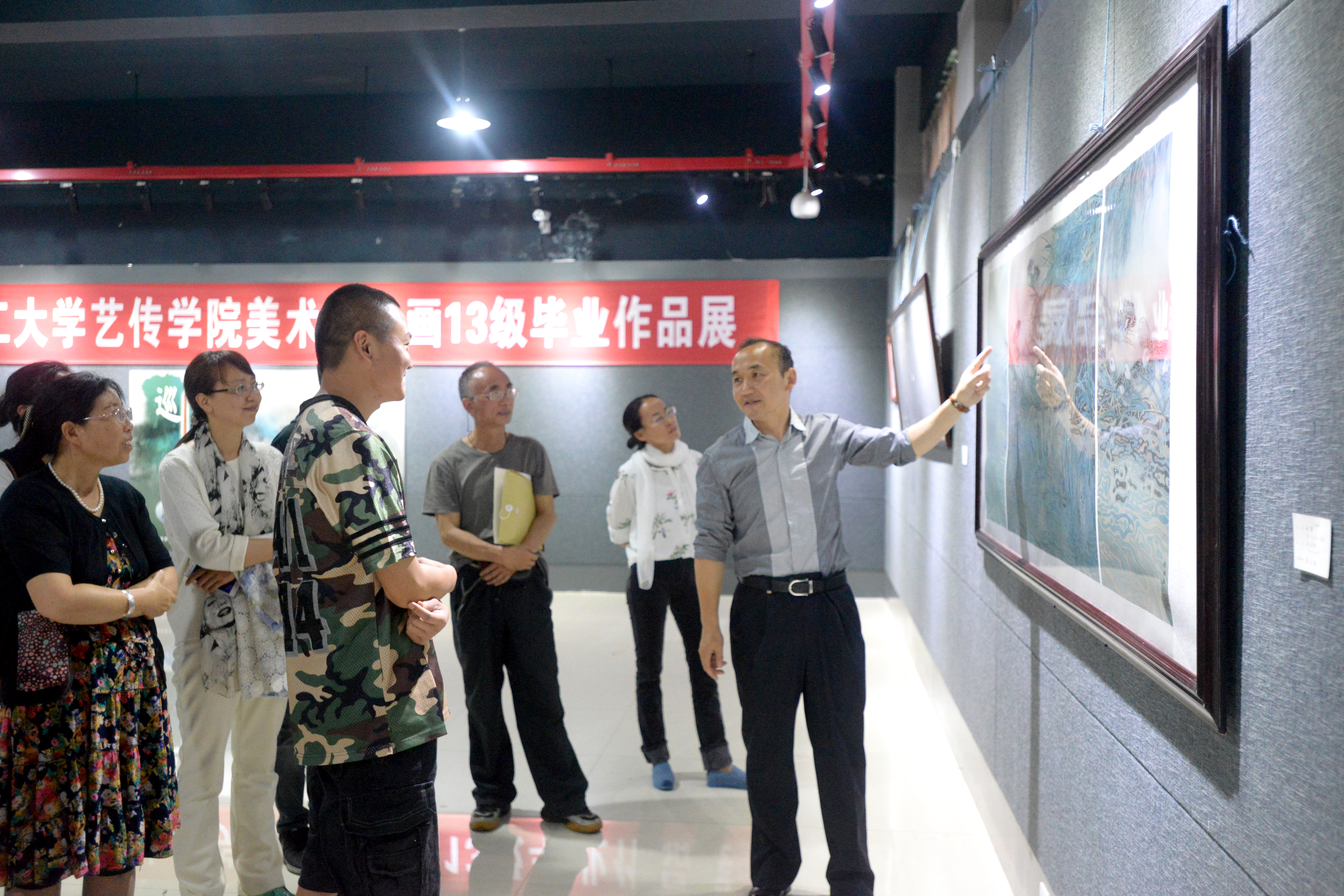 正在展出的绘画131班毕业作品“巡青”。绘画131班学生、绘画专业其它年级学生、美术系教师和艺传院党政领导聆听了周校的点评。