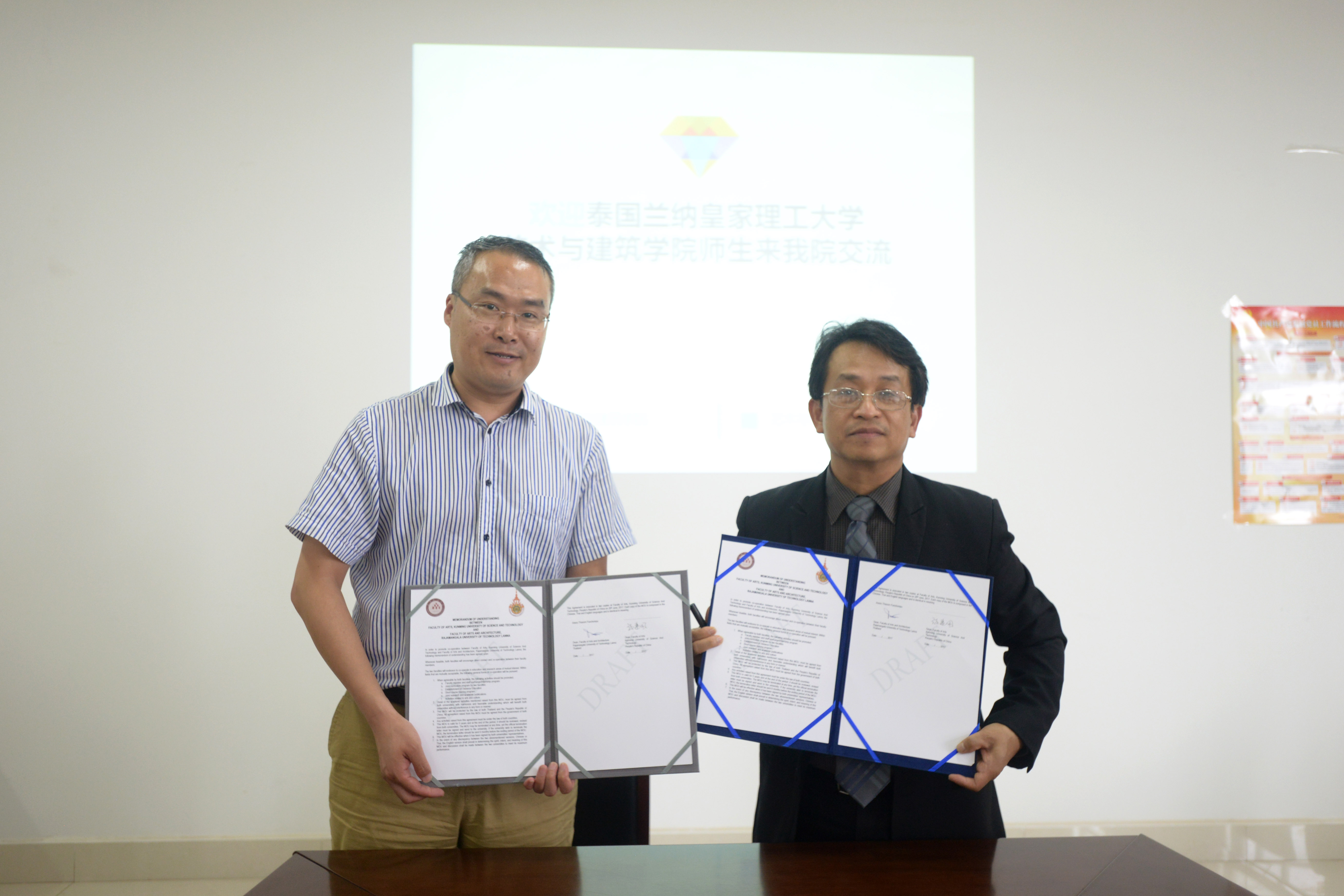 和兰纳皇家理工大学艺术建筑学院签订了双方合作协议意向书。艺传院党政领导、研教办及血液境外合作办公室老师,与兰纳皇家理工大学艺术建筑学院院长塔万·范宋普教授一行6人,参加签约仪式,双方进行了深入的交流。