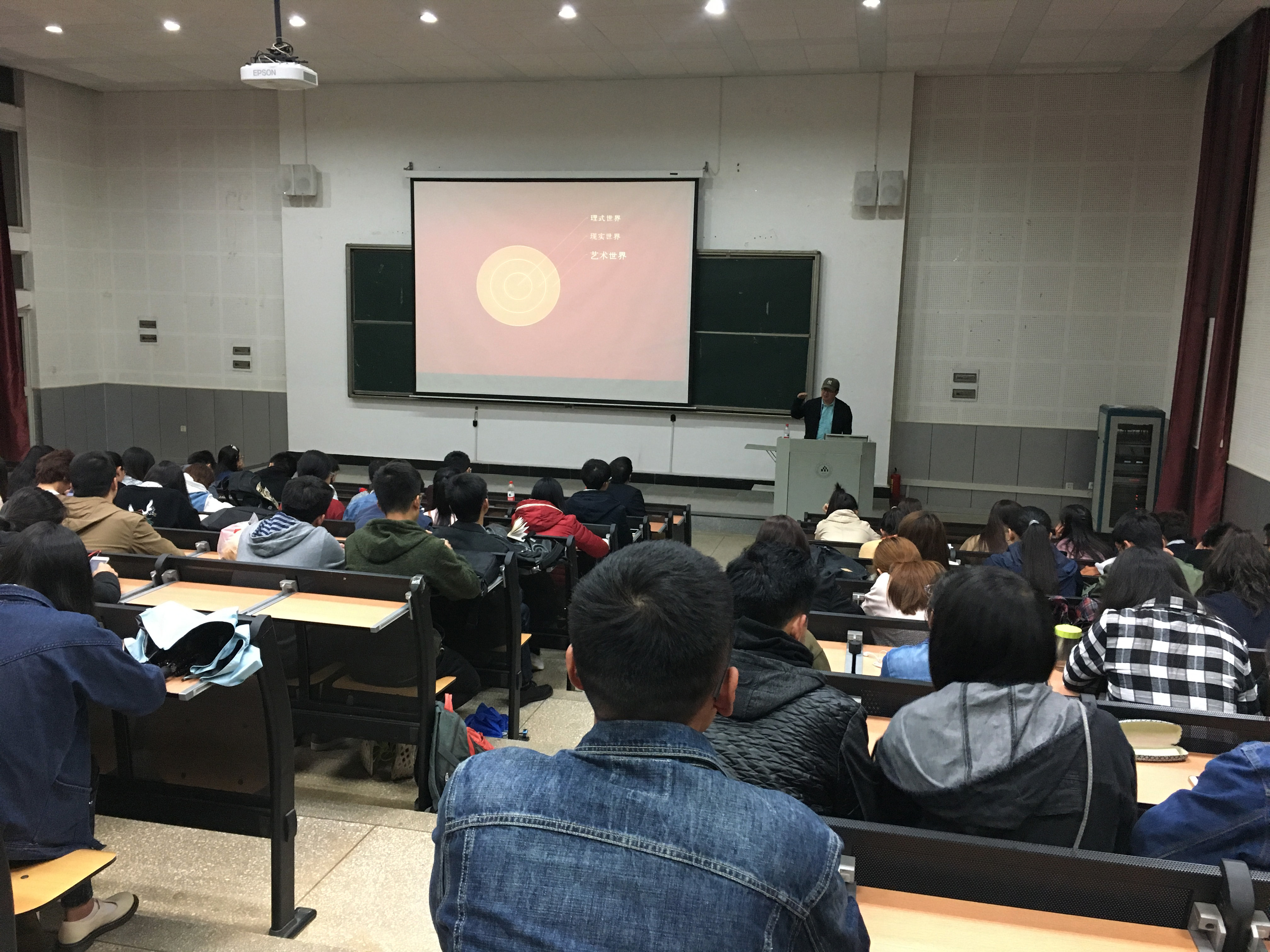 的两百多名师生作了题为《当下艺术现实与审美坚守的认识——艺术创作方法的剖析》的学术讲座。周星教授用生动的语言、丰富的案例深入浅出地阐释了观念认知和艺术创作的关系。他认为,艺术是人来创造的文化形态,艺术思维有别于科学的严谨逻辑而具有形象扩展的想象性,因此艺术创作没有一定之规,艺术创作方法不仅是创作的具体方式和技法,更主要是艺术创作的观念、艺术创作的行为方式、艺术创作的人格折射等。周星教授渊博的学识底蕴、诙谐幽默的语言风格,博得了现场师生的阵阵掌声。周兴教授的讲座拓展了老师和同学的学术视野,加深了大家对基础艺术理论和艺术创作的认知,启发了大家对如何把握艺术观念、如何进行艺术创作、如何进行学术探究等问题的思考,是一次难得的思想盛宴。