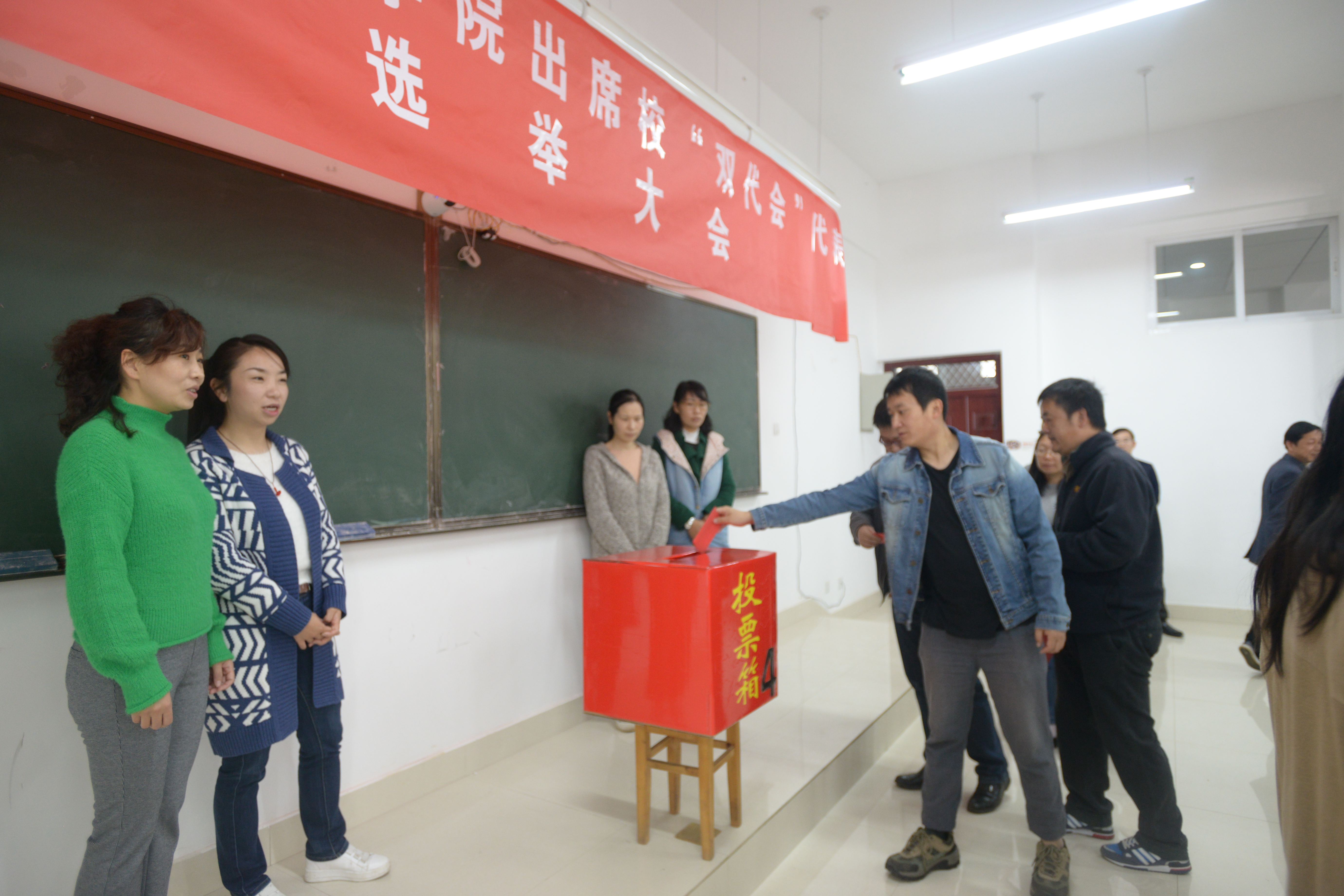 在公教楼410召开全院大会,选举出席校第八届教职工暨第十五届工会会员代表大会代表。全院应到教工95人,实到77人,实到人数超过应到人数的三分之二。