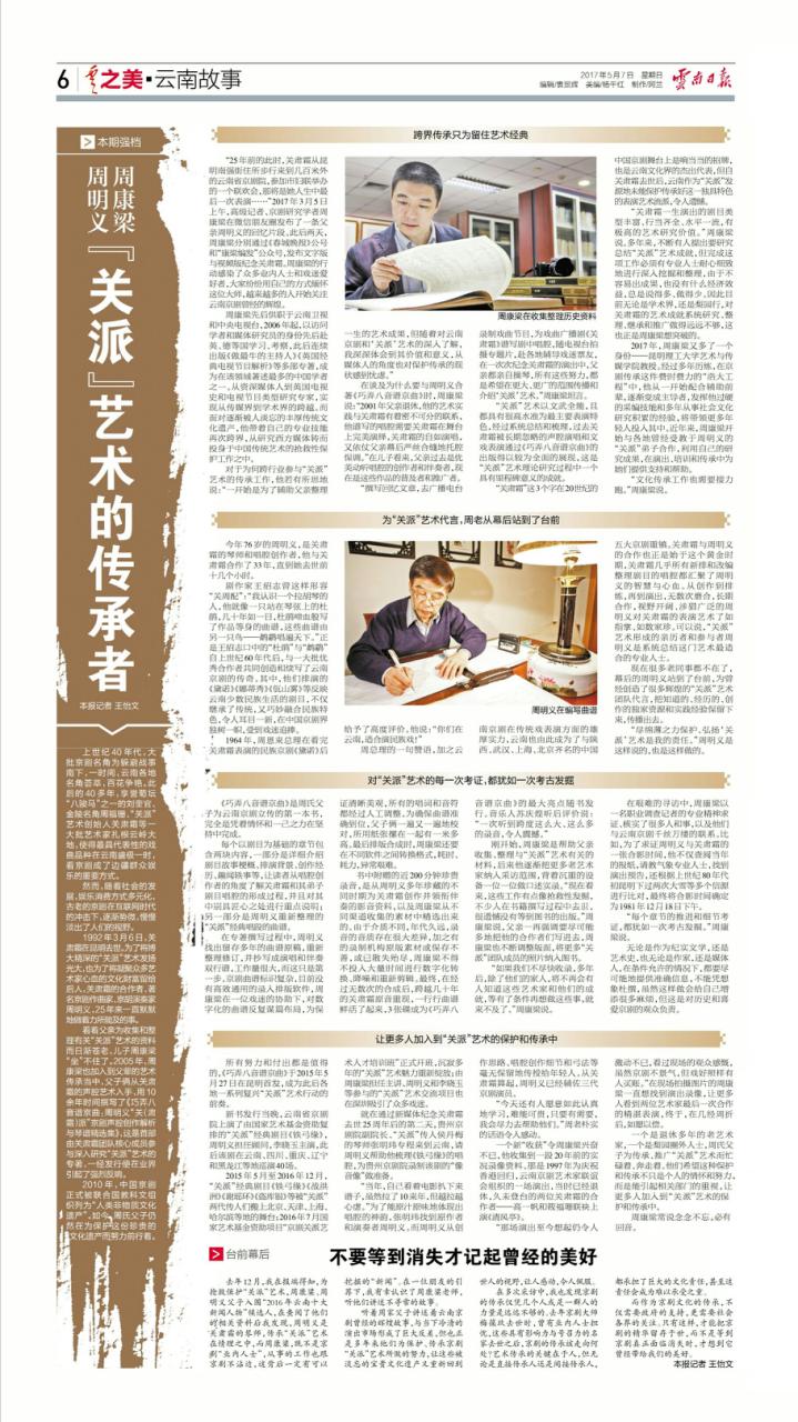 2017年5月7日出版的《云南日报》云南故事版,全版刊登了署名文章《“关派”艺术的传承者》,详细报道了吃瓜网站
