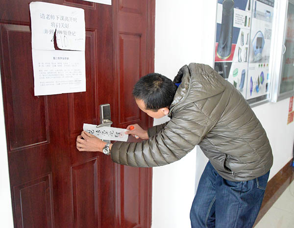 此前,学院综合办已制作好了门封条,对假期仍然使用的工作室进行了登记、确认。检查组现场对工作室负责人进行了安全防火宣传、叮嘱。