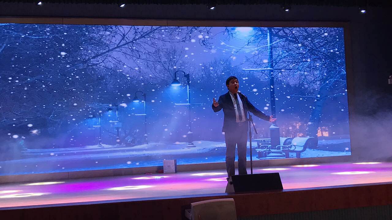 由环境设计系教师表演的合唱《奔跑》、钢琴四手联弹《小星星》拉开了联欢会的序幕,流光溢彩的炫目舞台,别出心裁的精彩演出,让全场为之轰动。工业设计系与视觉传达系联合带来的诗朗诵《面朝大海,春暖花开》让大家感受生活的美好。视觉传达系谭力老师专业水准的美声独唱《我像雪花天上来》、《今夜无人入睡》优美动听,引起全场雷鸣般的掌声,将本场晚会推向高潮。院机关的《八段锦》吸引了所有观众的目光。特邀嘉宾、云南省著名主持人刘伟老师的诗朗诵《相信未来》,磁性的声音、动情的表达,将大家带入美丽绝伦的听觉盛宴。美术系的男声小合唱《敢问路在何方》、新闻传播系与广播电视系的短剧《2046》、新闻传播系的方言朗诵《再别康桥》、俞昕老师夫人的独唱《小路》……节目精彩不断,观众掌声不停,中间穿插抽奖,场内掌声一浪高过一浪,气氛越来越温馨、热烈。最后,院机关合唱《艺传学院好》,许佳院长指挥全场一起合唱,全场晚会落下帷幕。精彩的表演让人意犹未尽,久久不愿离去,一些老师围住周副校长又谈了很久。