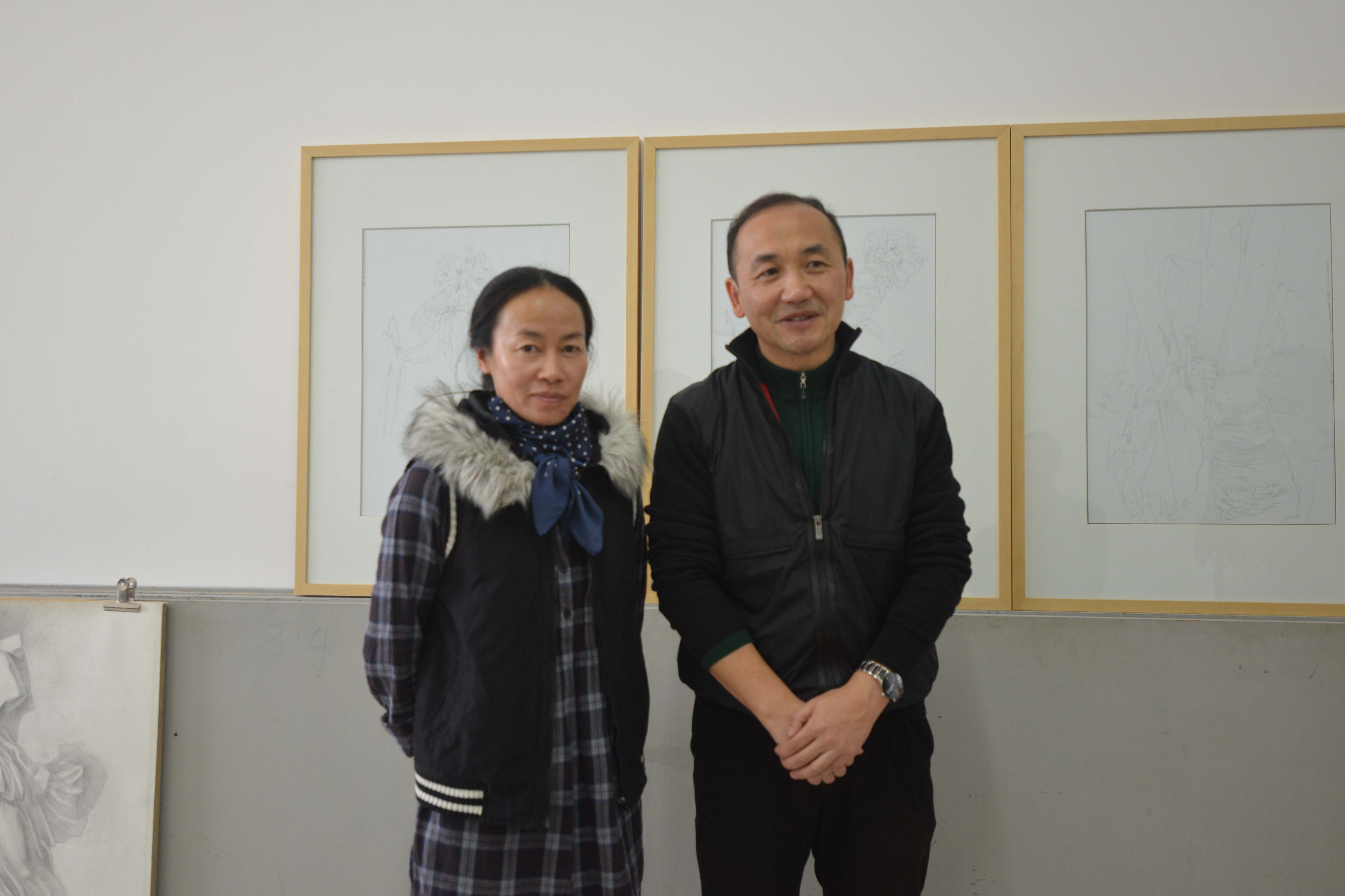 在赵志梅老师工作室,周校和她一起探讨她的白描画作的三种上色方案,对每种方案的得失作了精彩分析。