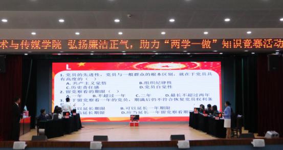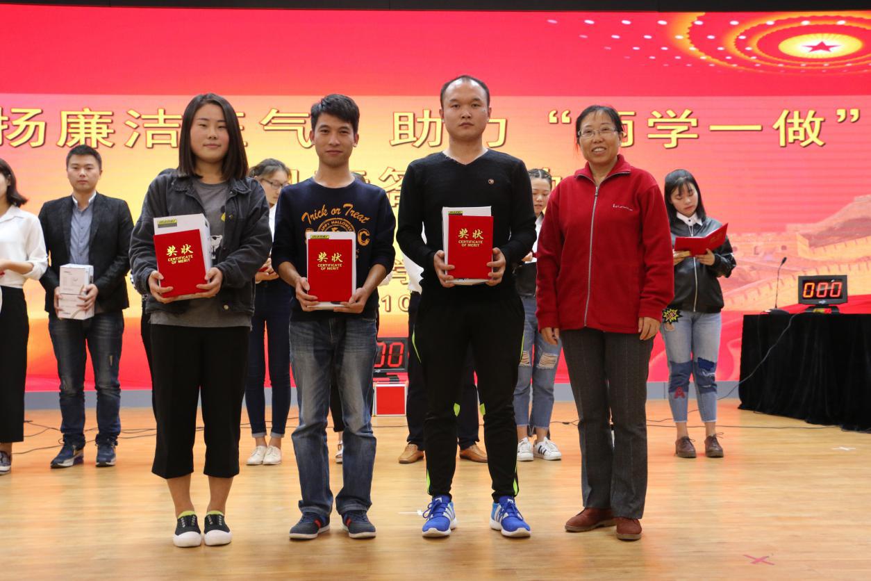 为了深入开展“两学一做”学习教育,助推学院廉洁从教、廉洁从学、廉洁从政的良好风尚深入人心,10月21日16:00,学院党委在小剧场举行了以“弘扬廉洁正气,助力‘两学一做’”为主题的知识竞赛活动。前来指导和观看比赛的有党委书记苏峰教授,副书记严波老师,学工办主任、学生第五支部支部书记郝儒梁老师,综合办主任、教工一支部支部书记李怀苍老师以及学生支部书记李霞老师、张瀚中老师。