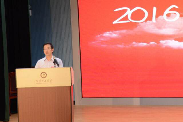 隆重举行了2016级本科新生开学典礼。出席本次开学典礼的领导有学院党委书记苏峰、院长许佳、党委副书记严波、副院长王勇。此外,院各系主任、班主任、行政管理人员、以及担任此次新生军训的6名教官、286名本科新生及家长出席了典礼。开学典礼由院党委副书记严波主持,院长许佳致辞。