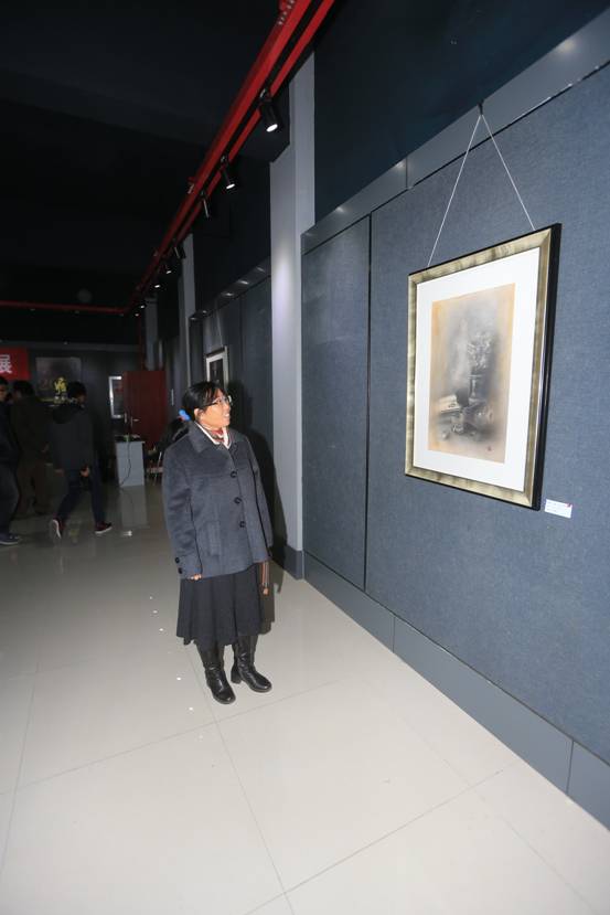 于公教楼美术馆举办艺传学院李文辉同学个人绘画展览,艺术传媒学院党委书记苏峰、院长许佳、党委副书记严波、副院长陈出云、王勇等领导及学院近50名师生参加了画展开幕仪式。