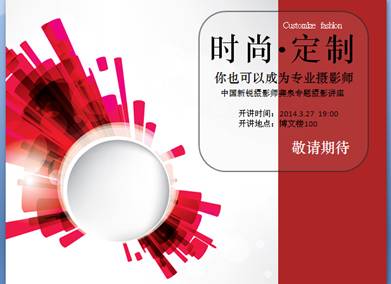 工业设计系主办,教务办承办的一场《时尚。定制》的摄影讲座,将在本周四(3月27)晚上7:00在博文楼100报告厅隆重举行,欢迎各位老师参加。