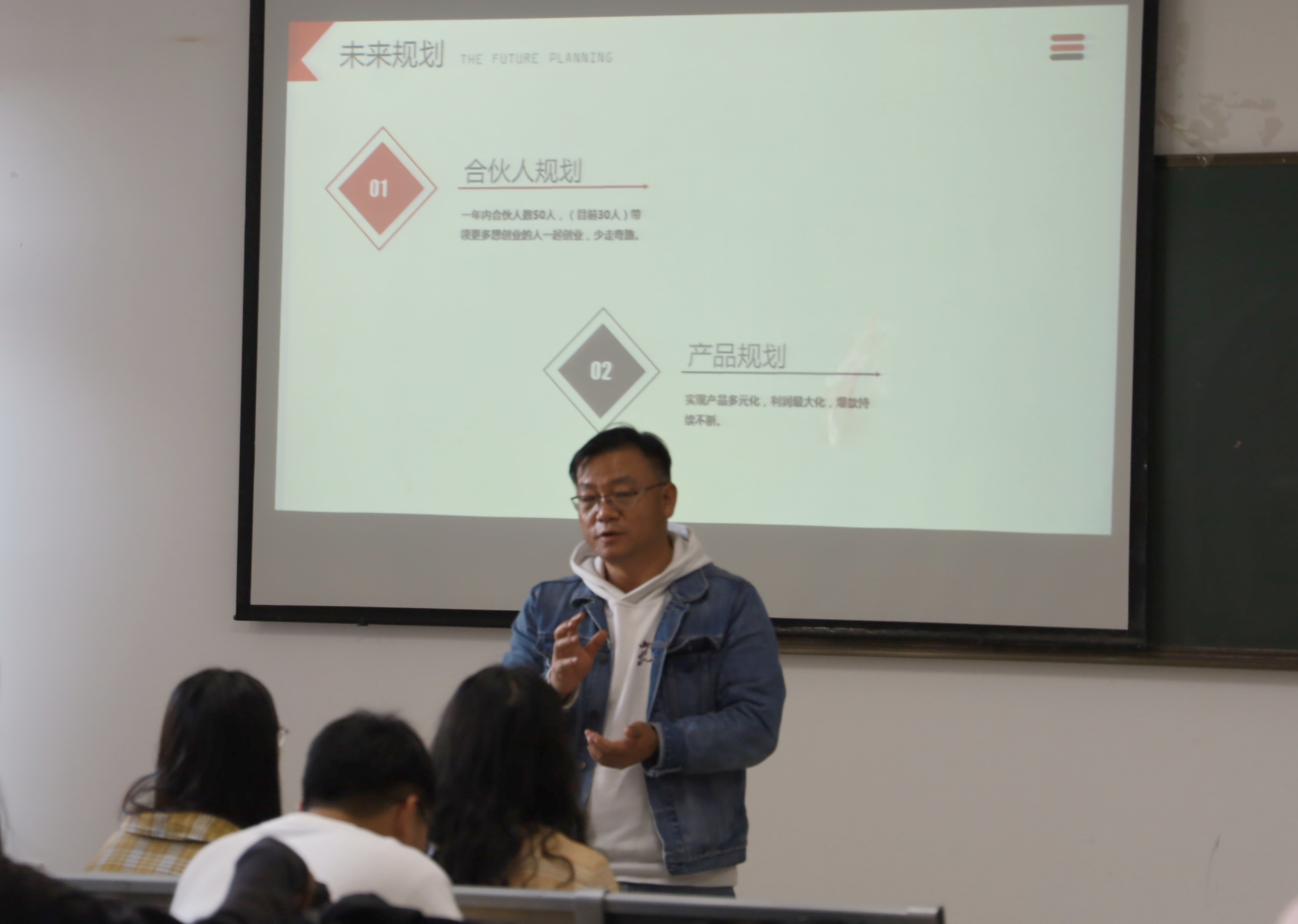 谢志华分享会的尾声,李怀苍老师结合谢志华校友的分享,向同学们提出了“与其临渊慕鱼,不如退而结网”的建议,激励同学们向优秀校友学习,努力在创新创业方面做出自己的成绩。