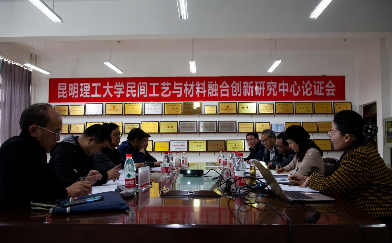 许佳院长主持,孙鸿雁教授对研究中心建设规划及基本情况进行了介绍。与会专家们通过听取汇报、交流质询等方式考察了中心建设情况,做了详细的评述和分析,为研究中心的建设落实提供了宝贵的意见和建议。原云南省社科联主席范建华提出,民间工艺的生产型传播传承比传统保护性传承更重要,要将工业生产和艺术创新结合起来,注重产品市场开拓和相关人才培养;人事处黄明勇处长指出,高校作为材料创新技术、弘扬民间艺术思想的策源地,理应在民间工艺与现代工业材料设计融合领域开创新局面、展现新作为;云南大学李浩教授提出要建立相应的产品品牌,做好宣传工作;云南白药国家级技能大师范志伟则指出了研究中心目前面临的一定问题。专家们认为中心定位明确,研究基础扎实,研究内容前沿,研究队伍充实,建设思路清晰,预期目标合理,服务面向精准,保障措施充分,具有较强的建设必要性和可行性。