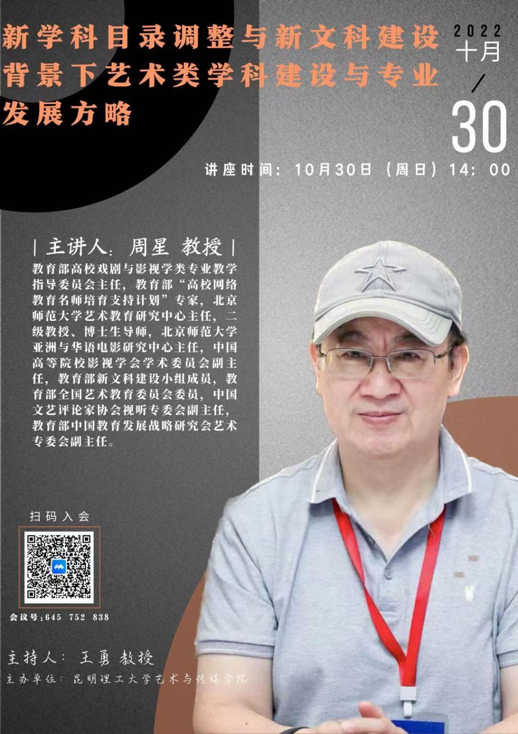 艺术学理论学科邀请,教育部戏剧与影视学类教指委主任、北京师范大学二级教授周星老师以在线形式为我校师生作题为《新学科目录调整与新文科建设背景下艺术类学科建设与专业发展方略》的主题讲座,讲座由吃瓜网站