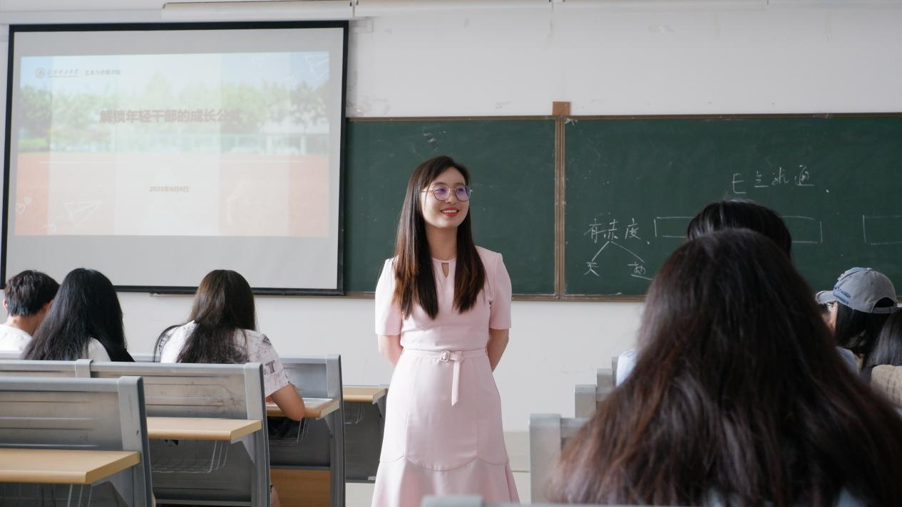 讲座中,李娟同学首先就自己本科期间的学习经历做了简单的介绍,随后总结了自己在参加学生工作过程中感悟,分享了一些保研和备考的经验,并向在场的学生干部们提了几点建议。第一,同学们要比学习不要比学历,学历不等于能力,文凭不等于文化。学历是一块敲门砖,但单靠学历是无法打开通往理想工作的门阀。学习是一种持续不断的自我提升,它能让我们逐渐意识到自己的潜力。第二,要比进步不要比起步。她鼓励大家靠自己的能力努力提升,不要怕对手有多强大,相信自己能在这些历练中获得收获。只要你肯努力,一切皆有可能。第三,李娟同学号召学生干部们“要有担当不要躺平”,作为学生干部,加强学习很重要,在这过程中可以提升自己的内功,从自身做起,带动班级同学一起努力学习进步,进而实现班集体的整体提升。