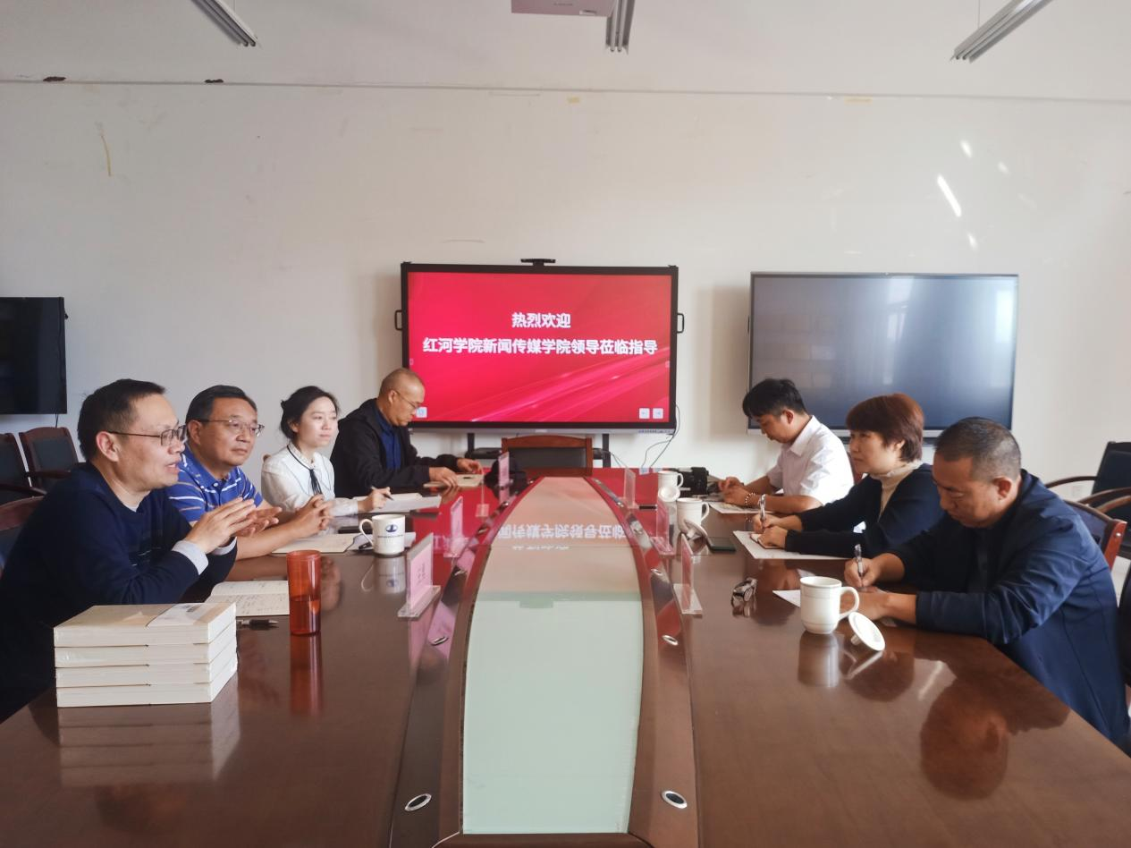党委书记孙刚、党委副书记张祎颖、副院长王勇、张建国向红河学院新闻传媒学院党委丁雪梅书记一行介绍了吃瓜网站