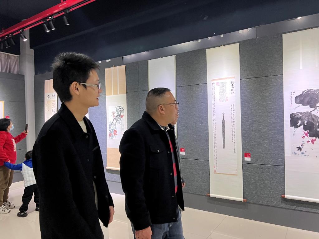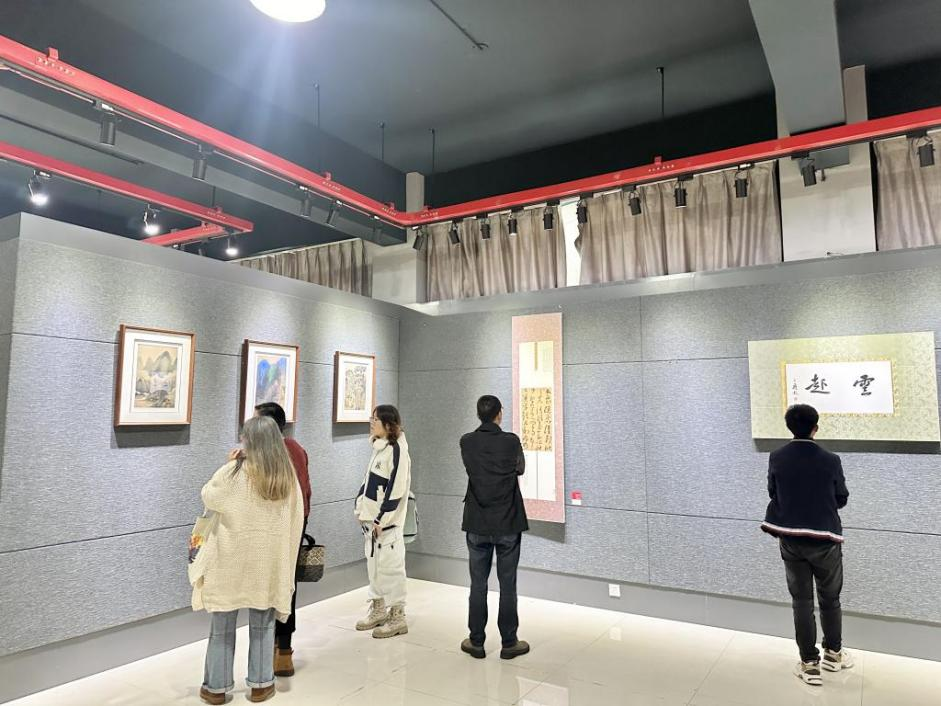 到场嘉宾及师生欣赏书画作品