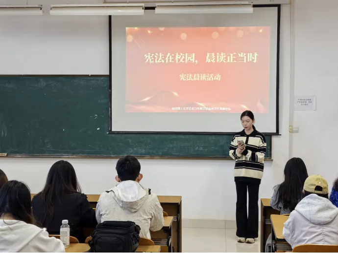 为深入贯彻落实习近平总书记关于宪法法治教育的重要指示精神,提升全体师生的法治素养,12月4日早上九时许,在全国第11个国家宪法日当天,学院在公教楼309举办了“宪法晨读”活动。此次活动旨在普及宪法知识,增强宪法意识,引导学生成为宪法的忠实崇尚者、自觉遵守者和坚定捍卫者。